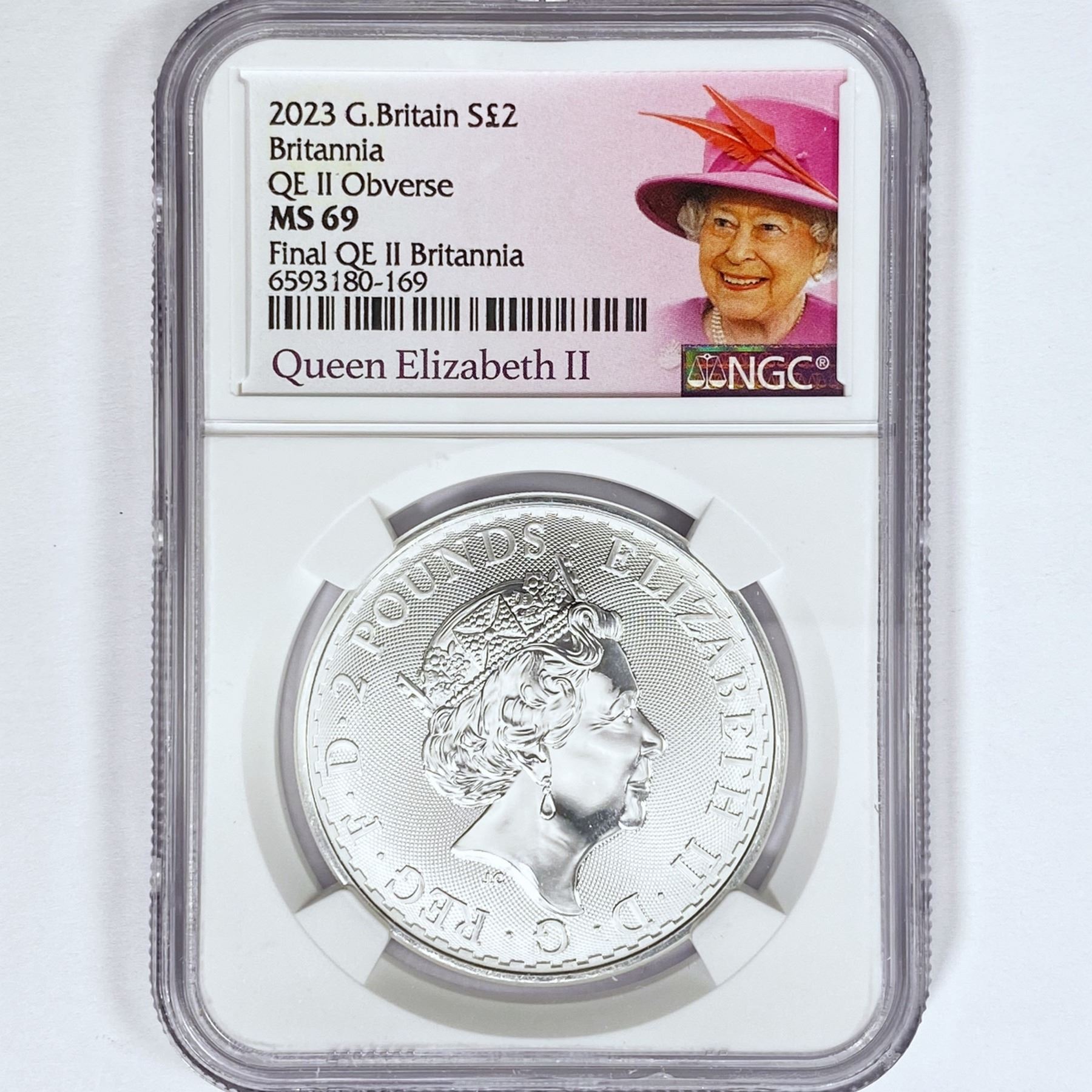 2023 1oz G.B. S2£ NGC MS69 Q. Elizabeth II