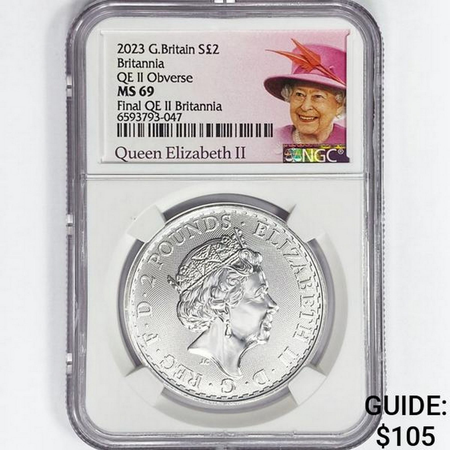 2023 1oz G.B. S2£ NGC MS69 Q. Elizabeth II