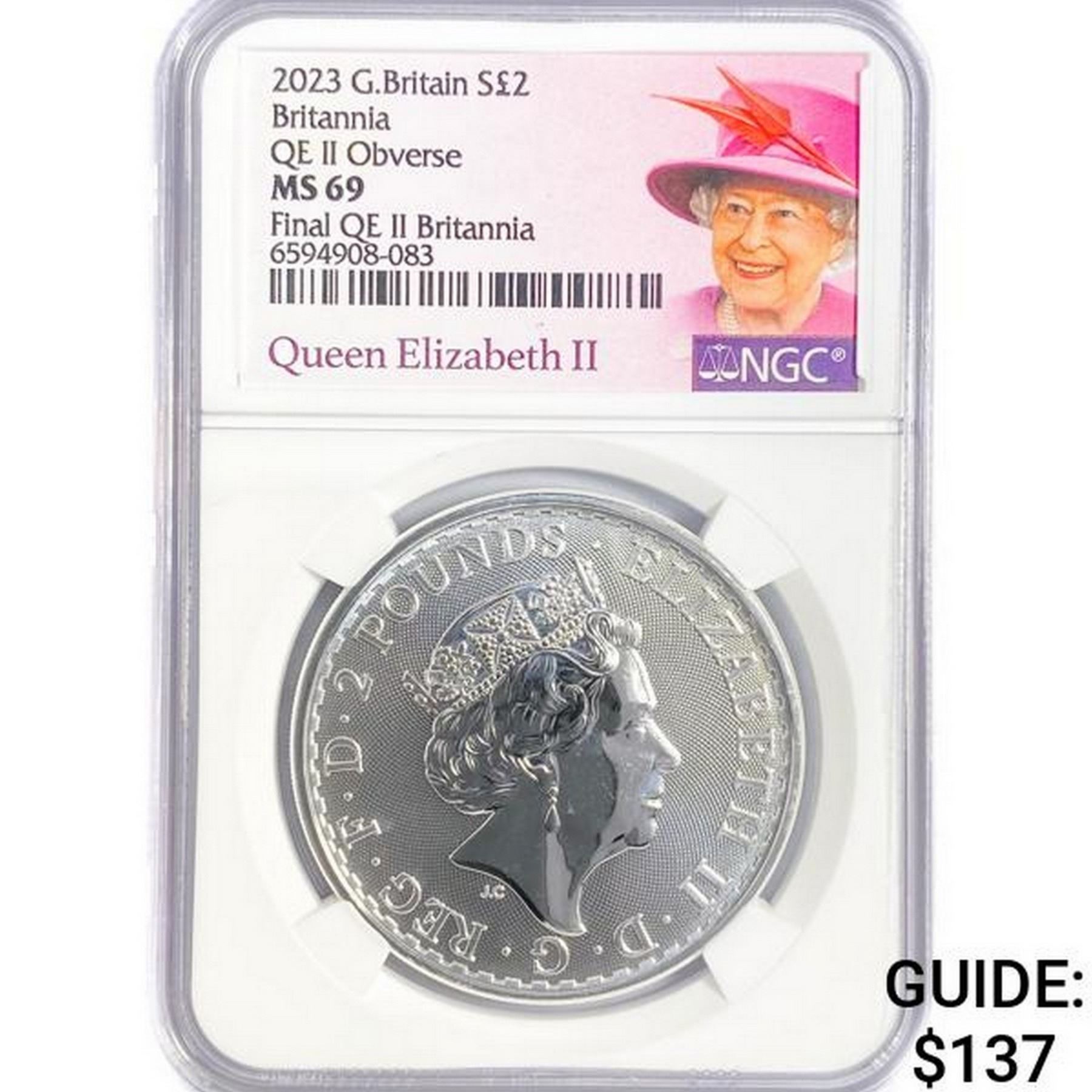 2023 1oz G.B. S2£ NGC MS69 Q. Elizabeth II