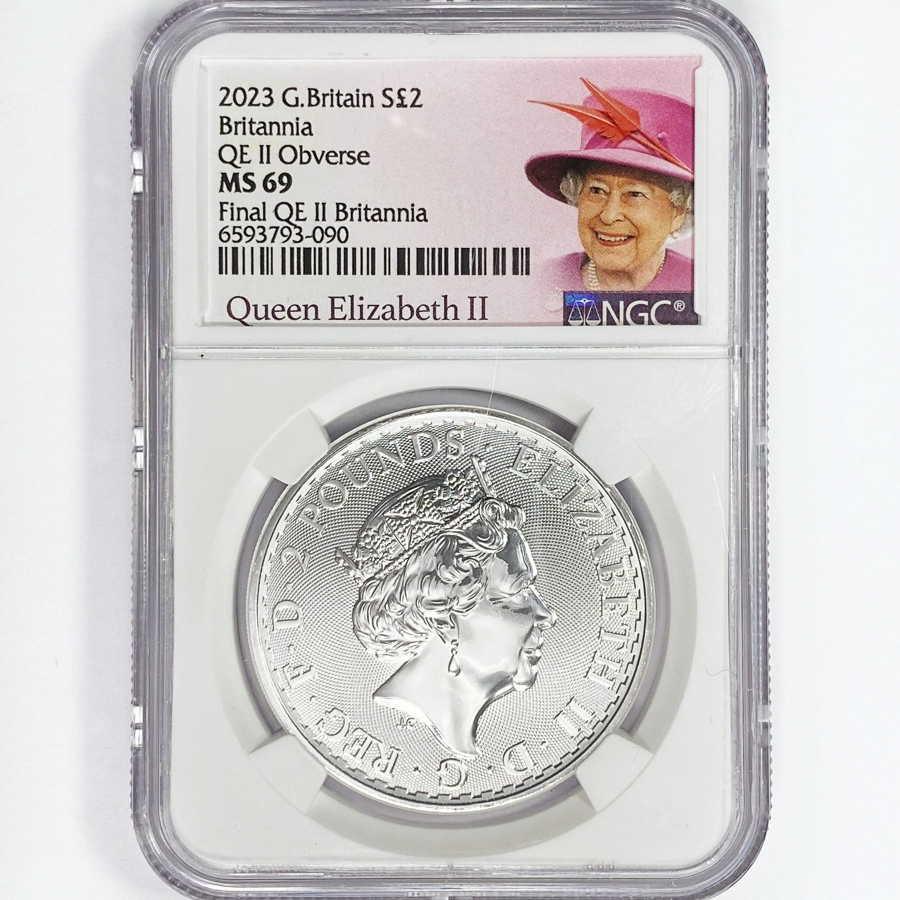 2023 1oz G.B. S2£ NGC MS69 Q. Elizabeth II