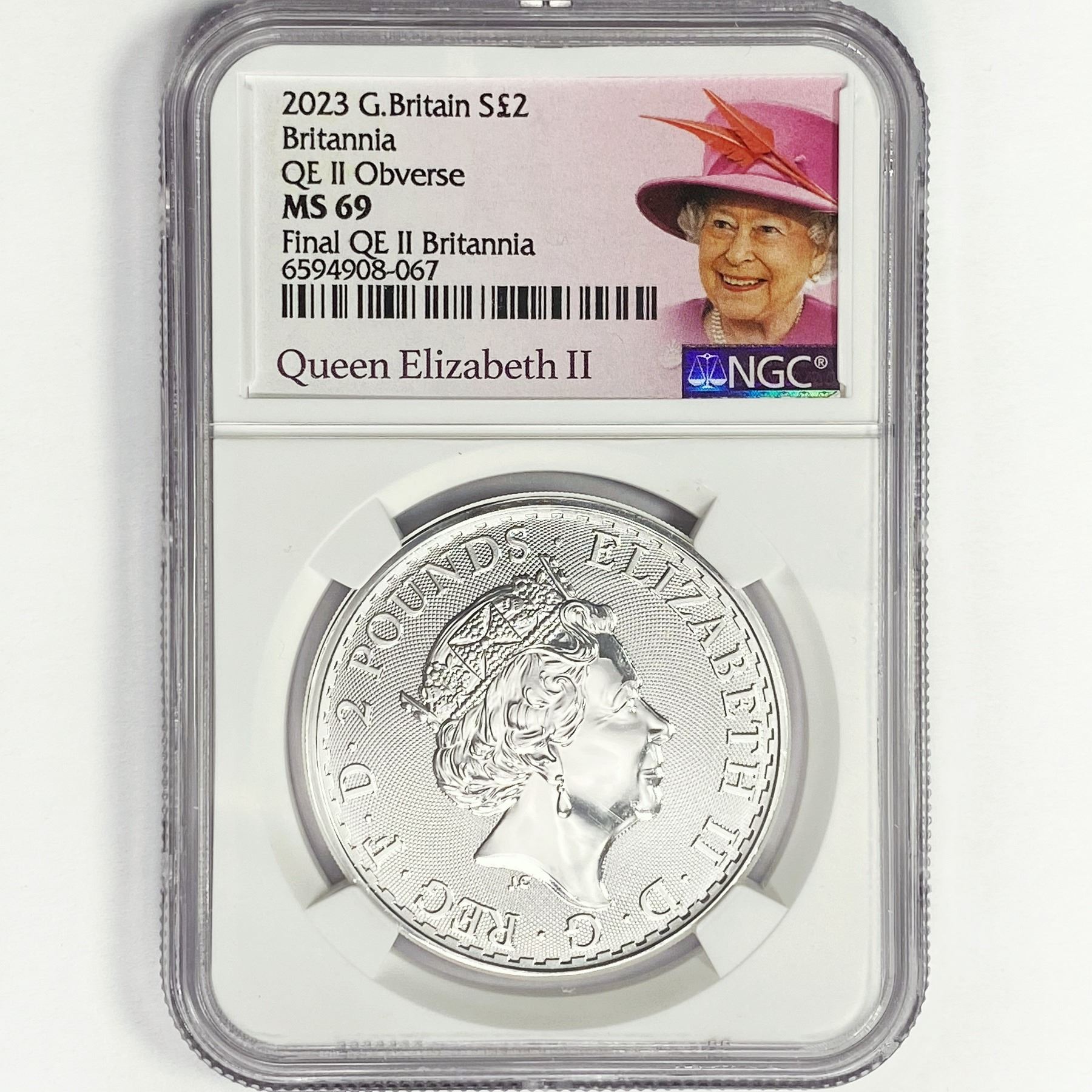 2023 1oz G.B. S2£ NGC MS69 Q. Elizabeth II