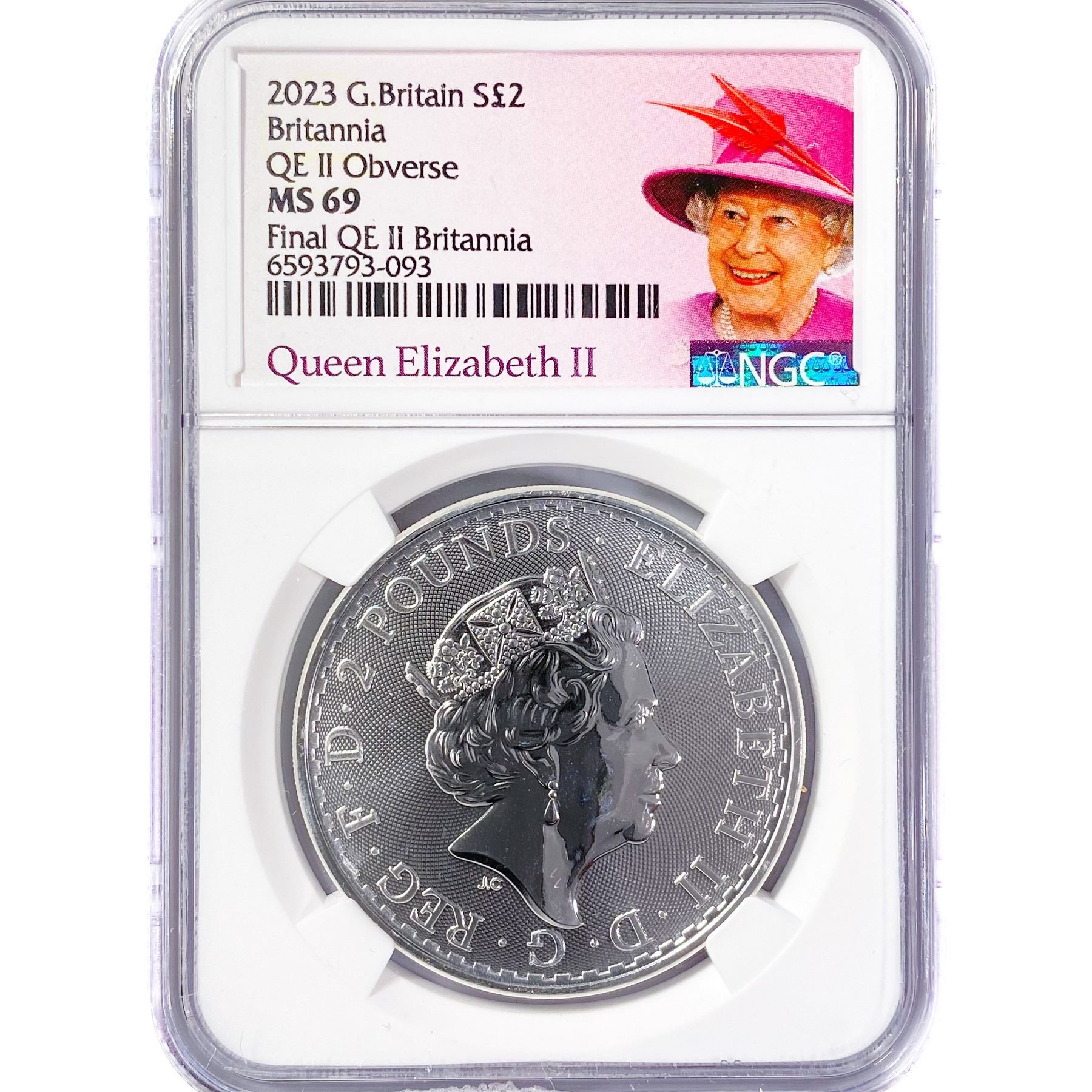 2023 1oz G.B. S2£ NGC MS69 Q. Elizabeth II