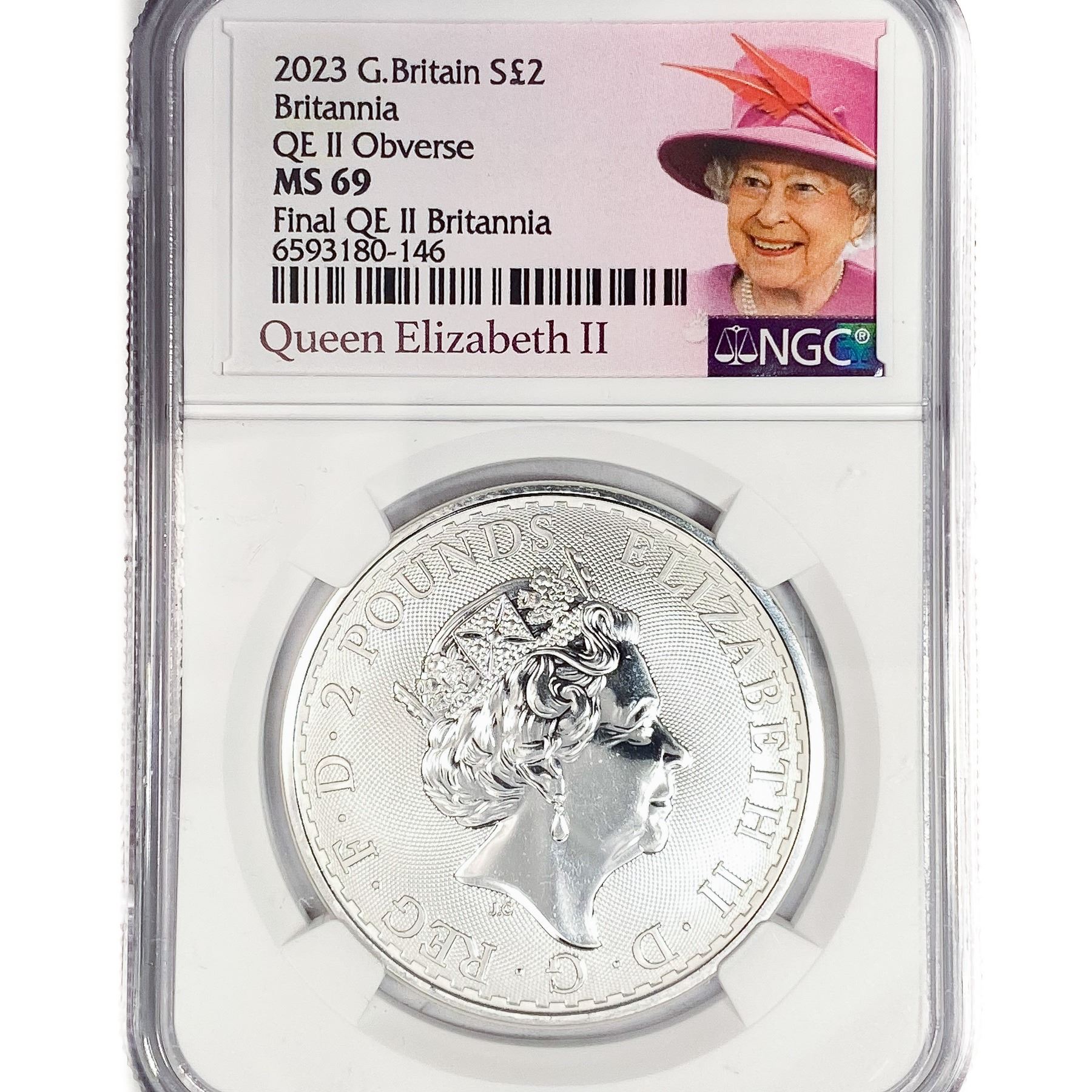 2023 1oz G.B. S2£ NGC MS69 Q. Elizabeth II