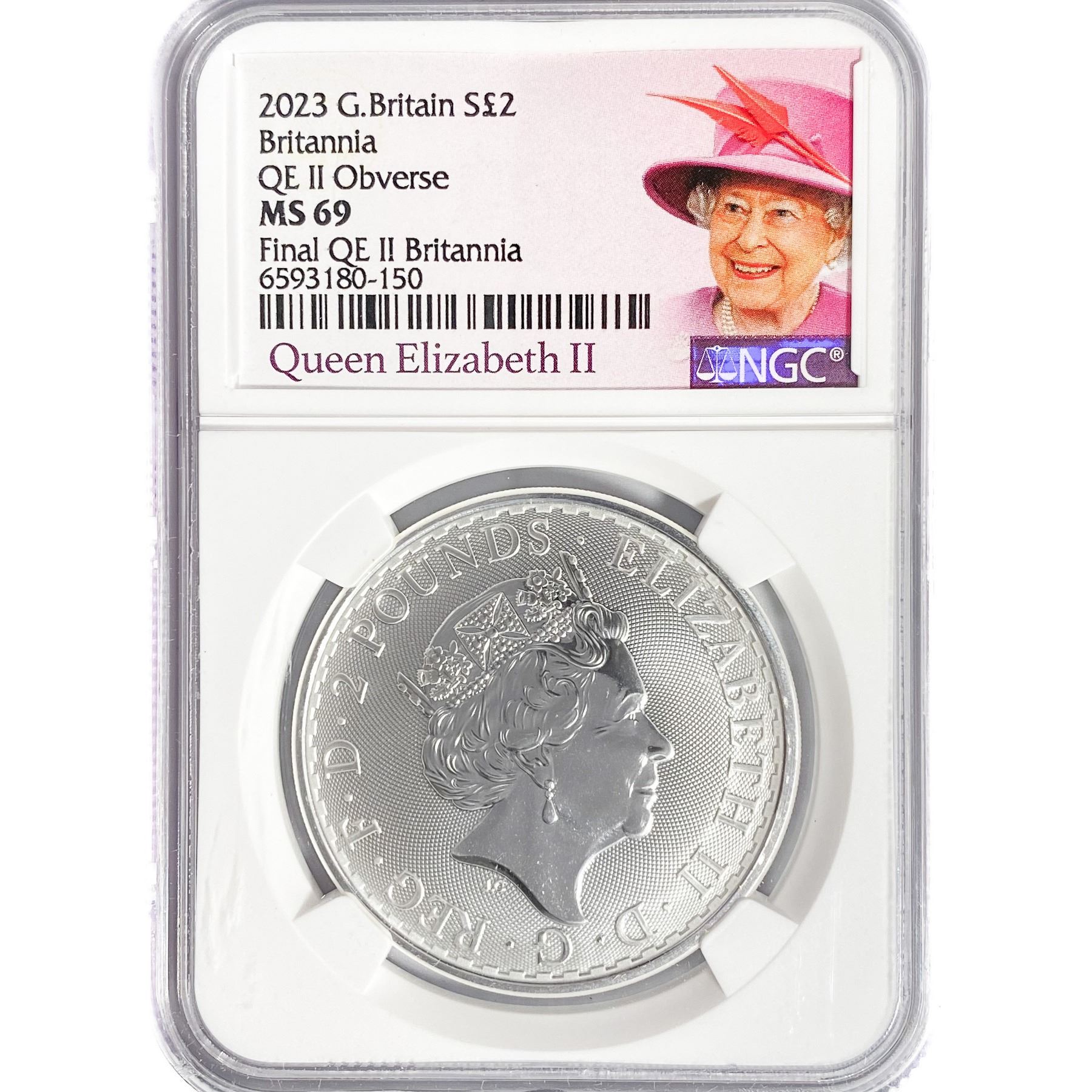 2023 1oz G.B. S2£ NGC MS69 Q. Elizabeth II