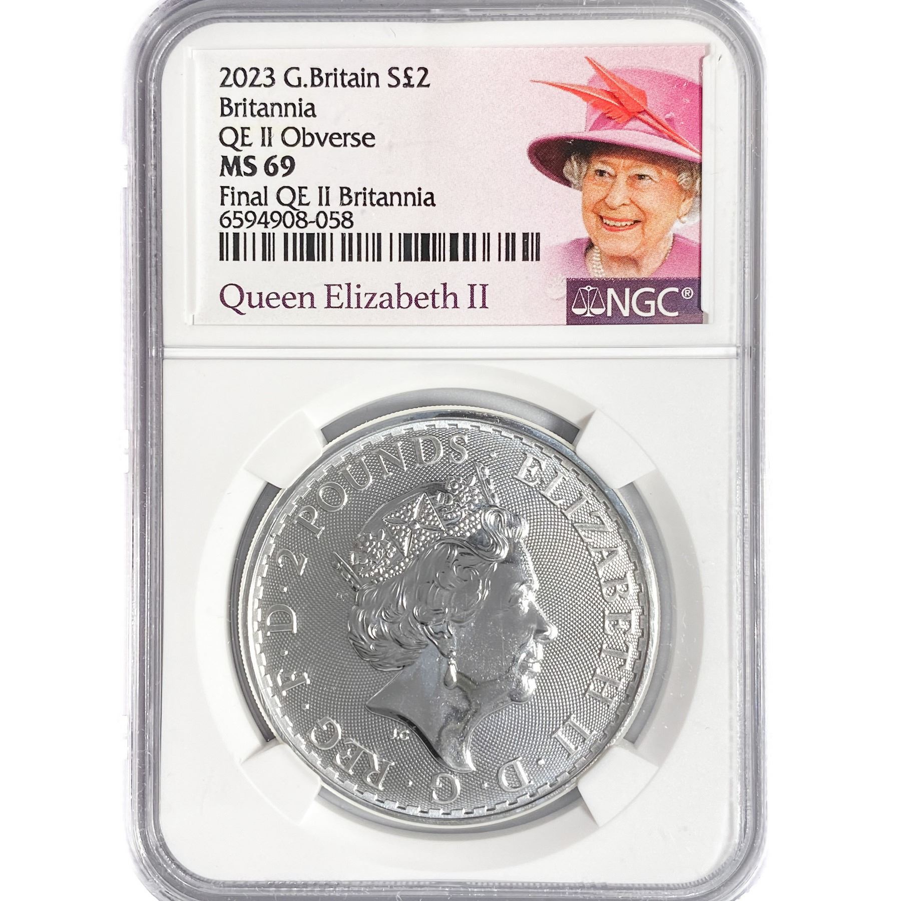 2023 1oz G.B. S2£ NGC MS69 Q. Elizabeth II