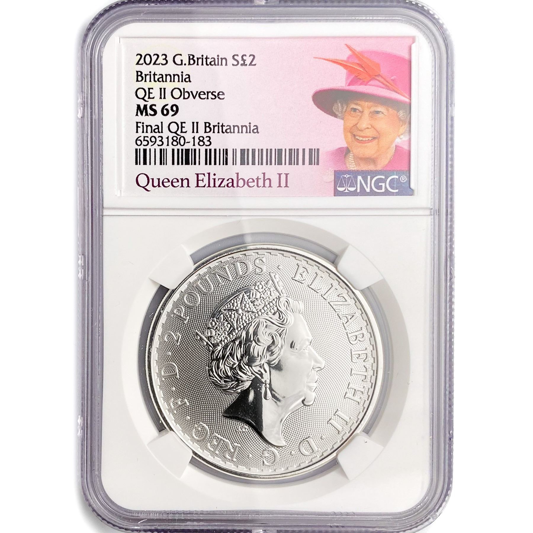 2023 1oz G.B. S2£ NGC MS69 Q. Elizabeth II