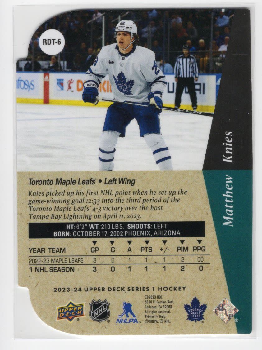 2023-2024 Upper Deck Series 1 Matthew Knies ROOKIE DIE CUT 1995 Anniversary Card number RDT-6
