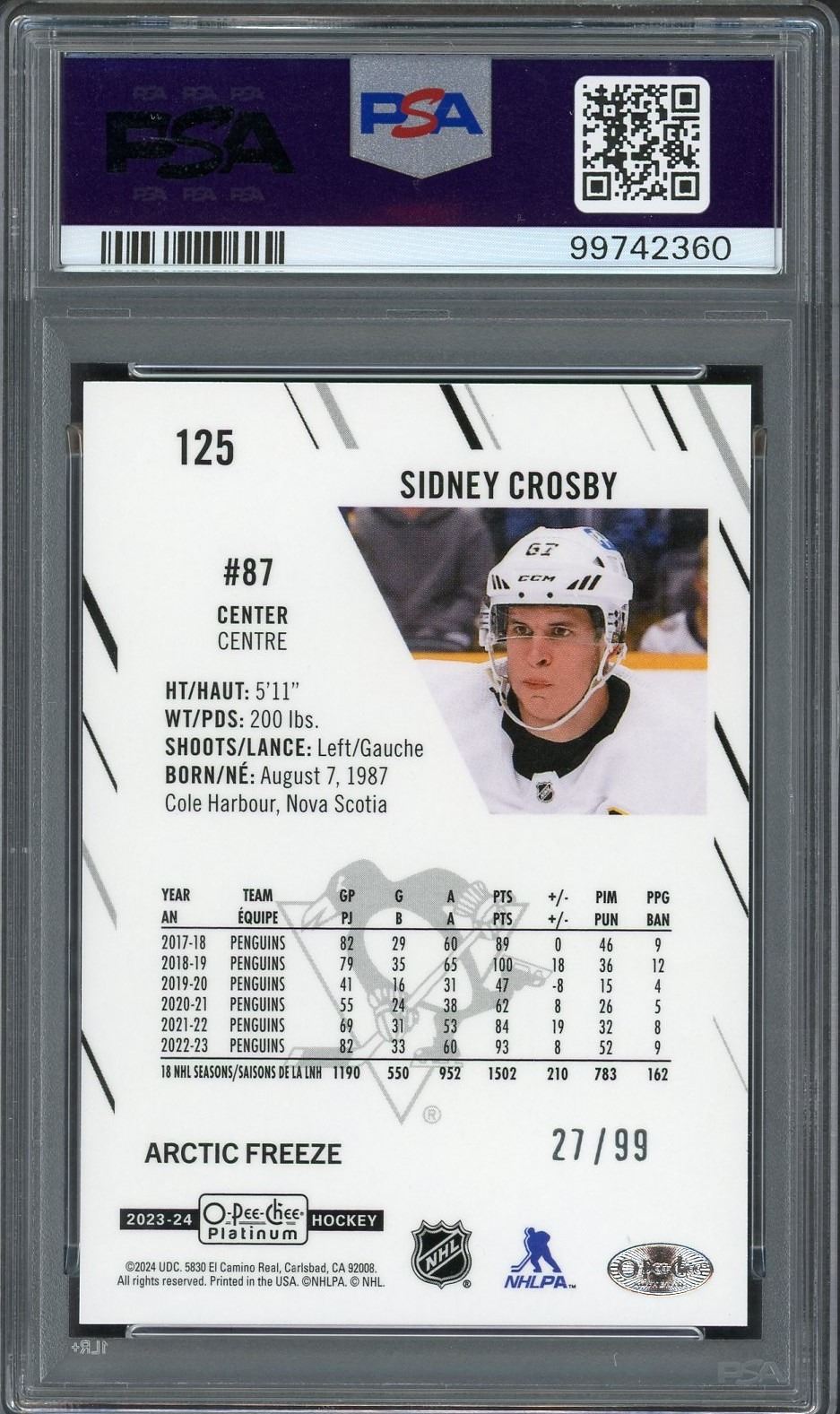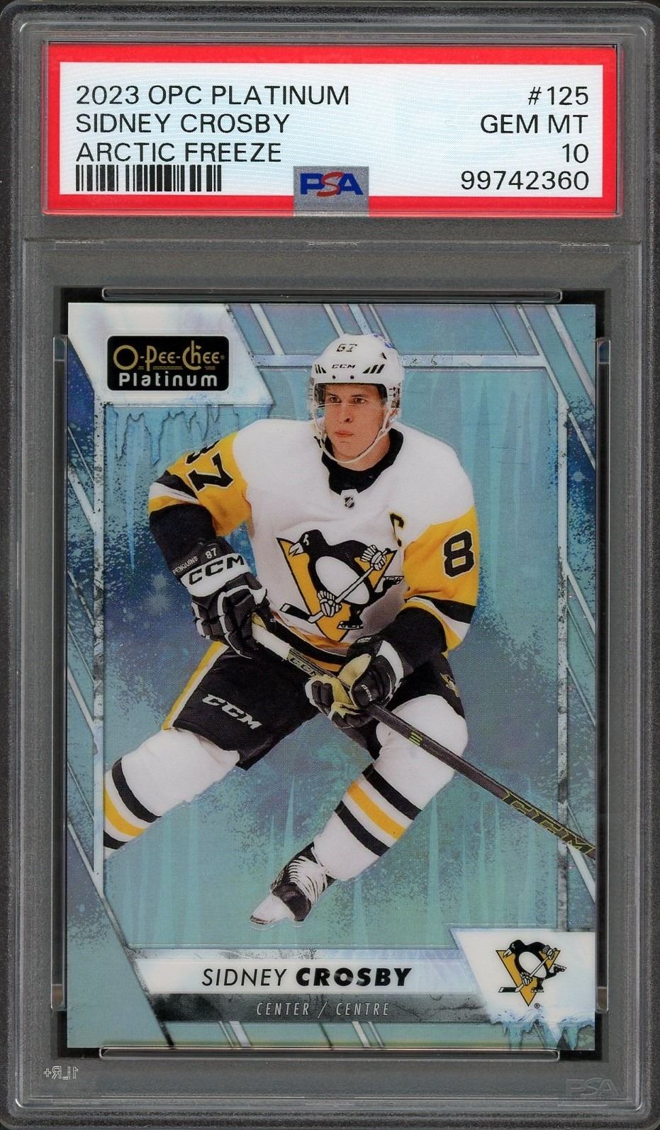 2023-24 OPC Platinum Sidney Crosby SSP Arctic Freeze #'d to 99 graded a gem mint 10 by PSA!