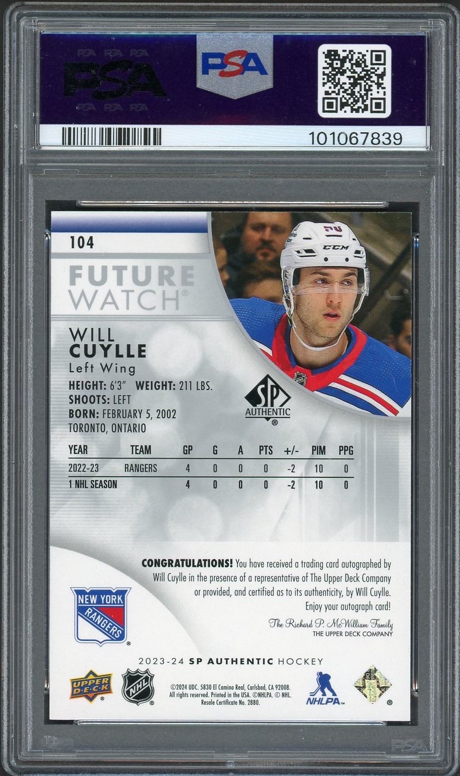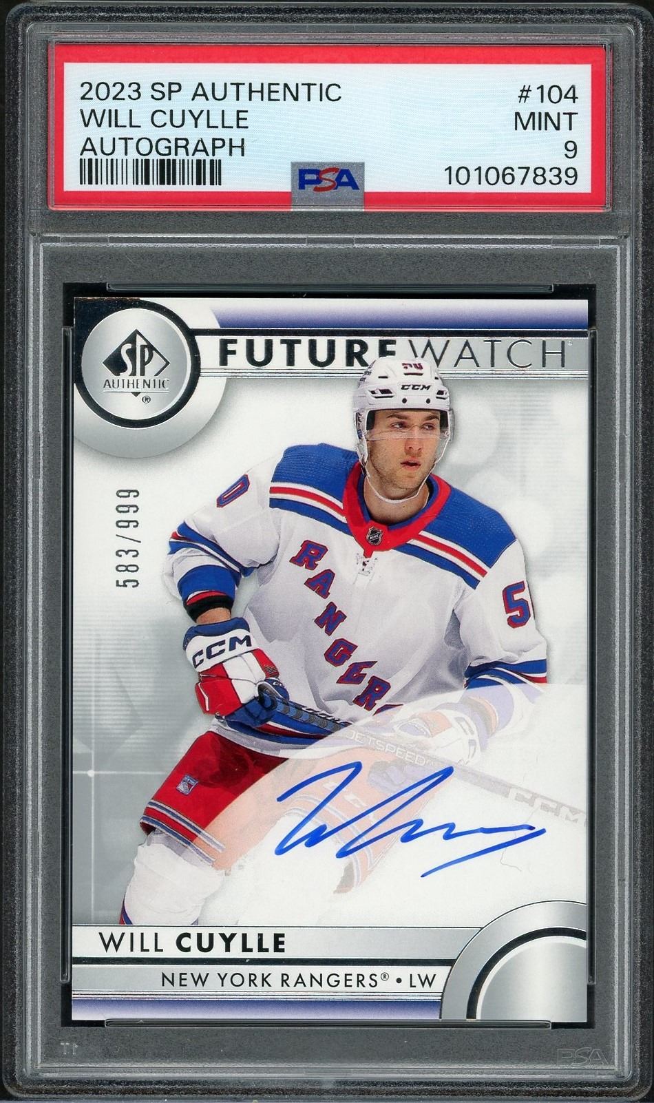 2023-24 SP Authentic Future Watch Autograph #'d to 999 of Rangers forward Will Cuylle graded a mint 9 by PSA!