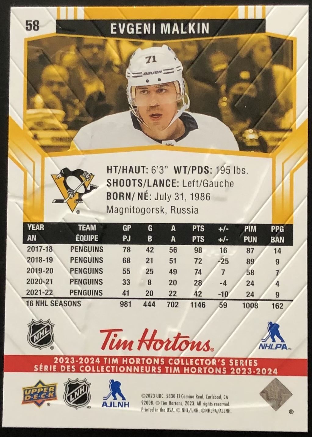 Tim Hortons card #58 UD, regional, NHL, hockey
