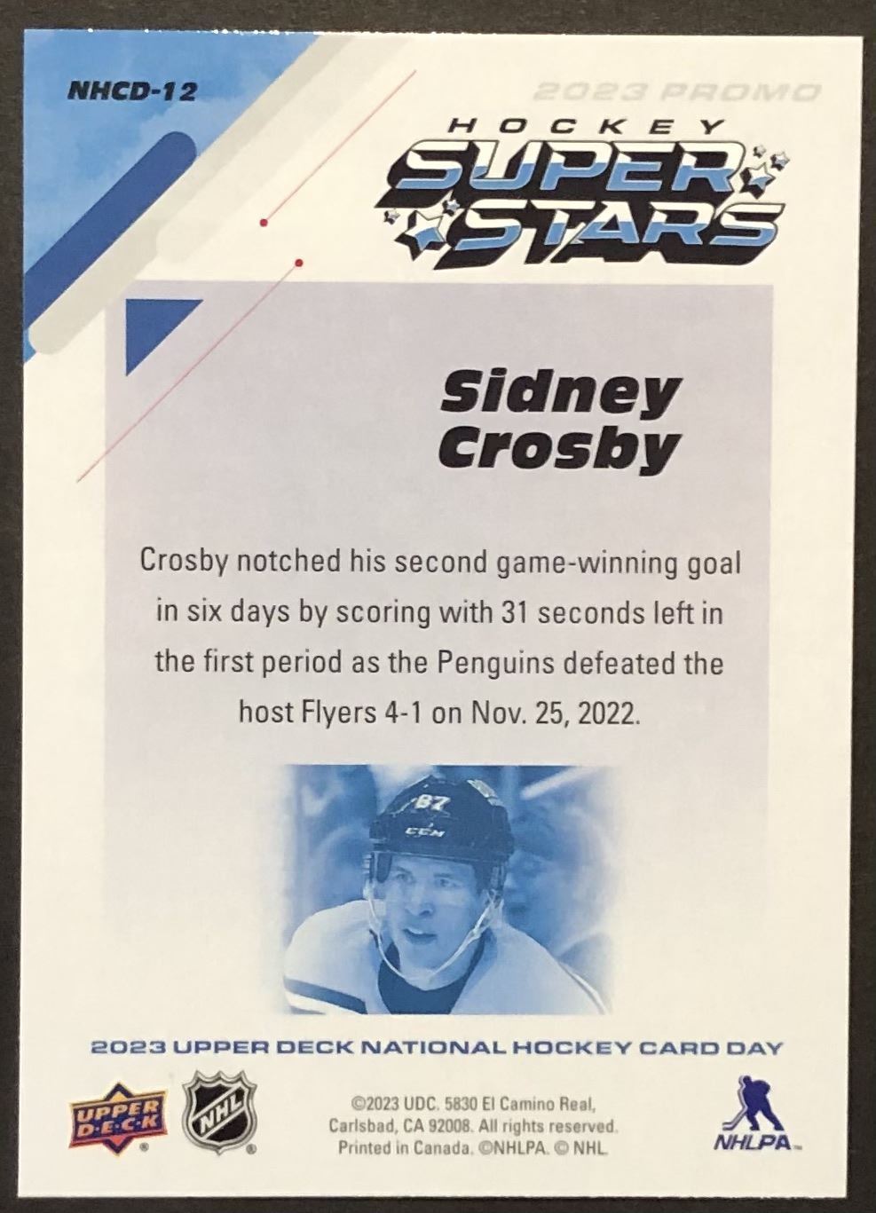 NATIONAL HOCKEY CARD DAY, card #NHCD-12 UD, hockey, NHL, regional