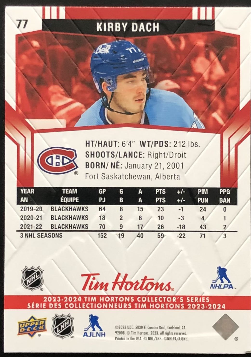 Tim Hortons card #77 UD, regional, NHL, hockey
