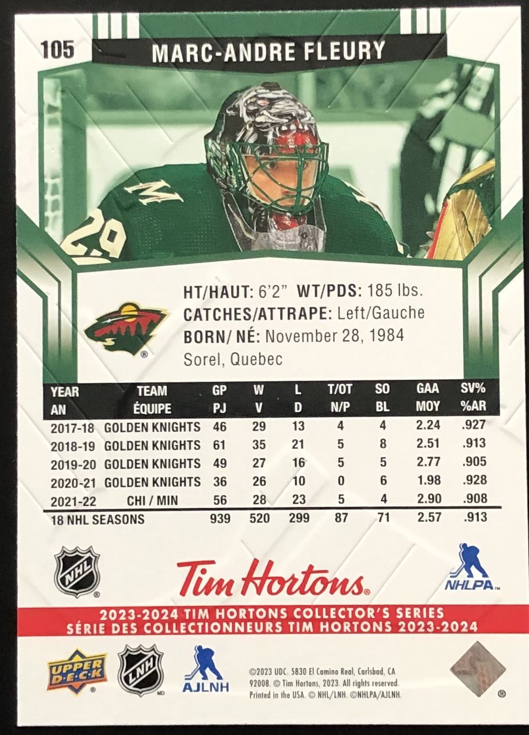 Tim Hortons card #105 UD, regional, NHL, hockey
