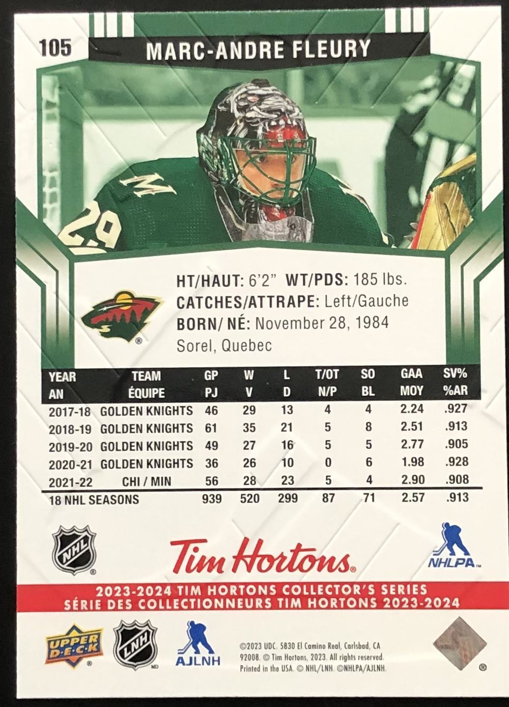 Tim Hortons card #105 UD, regional, NHL, hockey