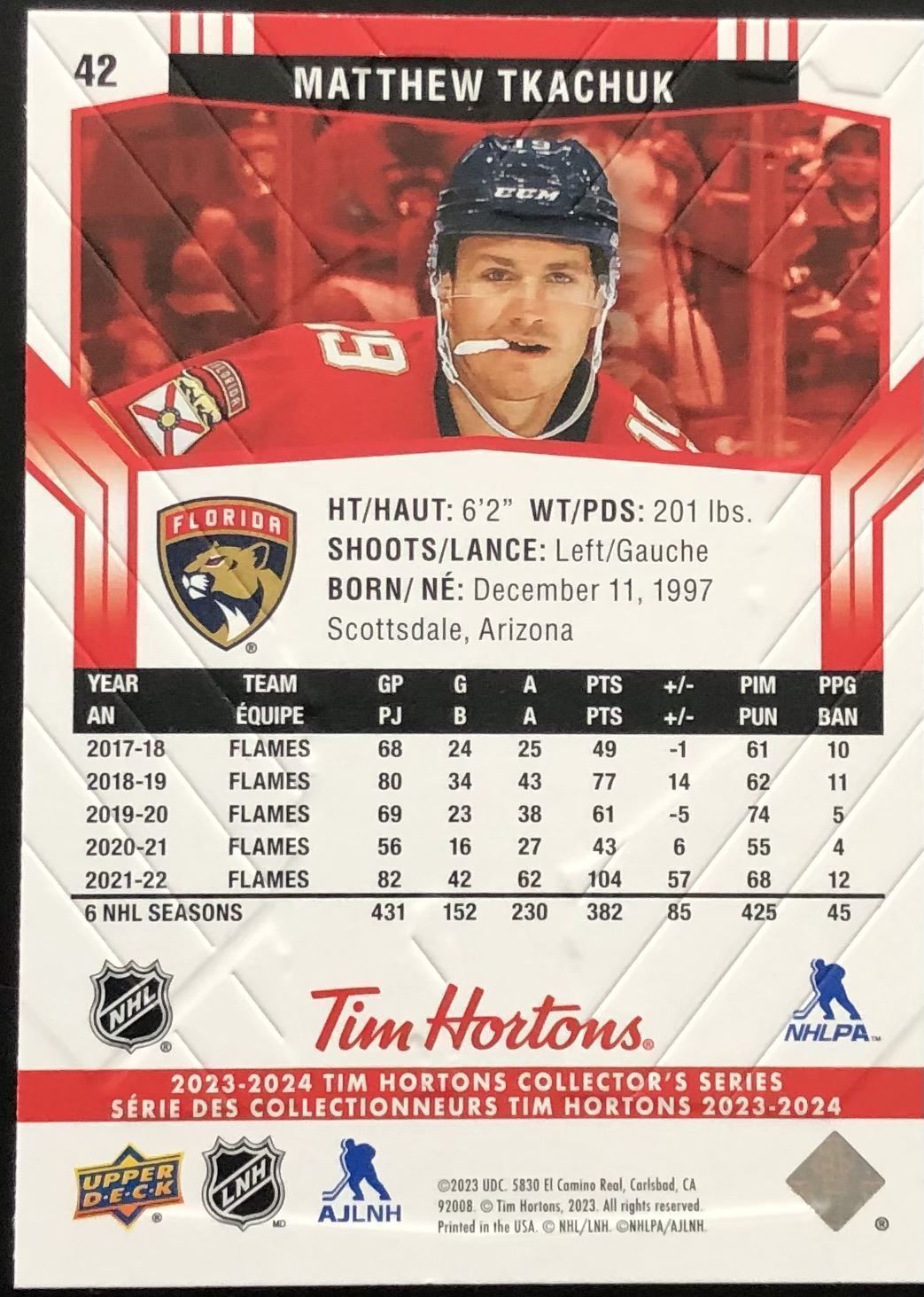 Tim Hortons card #42 UD, regional, NHL, hockey