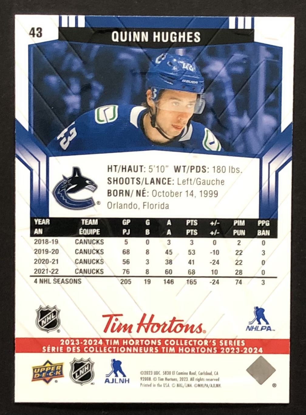 TIM HORTONS card #43 UD, hockey, NHL, regional