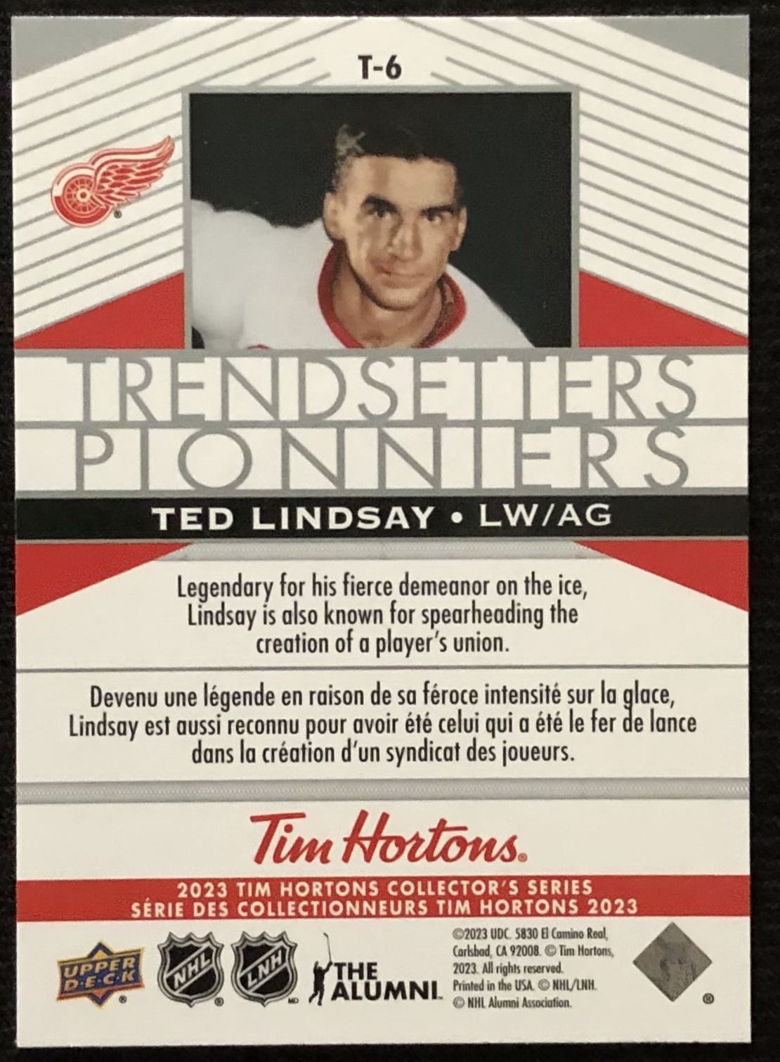 Tim Hortons card #T6 NHL, hockey, UD, hall of fame, regional