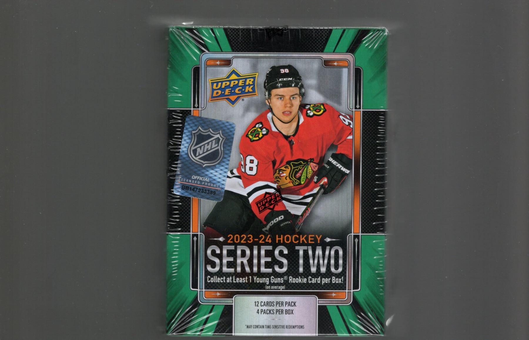 2023-'24 Upper Deck Series 2 Hockey Blaster Box - Connor Bedard - At least 1 Young Guns Per Box & 1 Green Dazzlers Insert Per Box. 48 Cards Per Box.