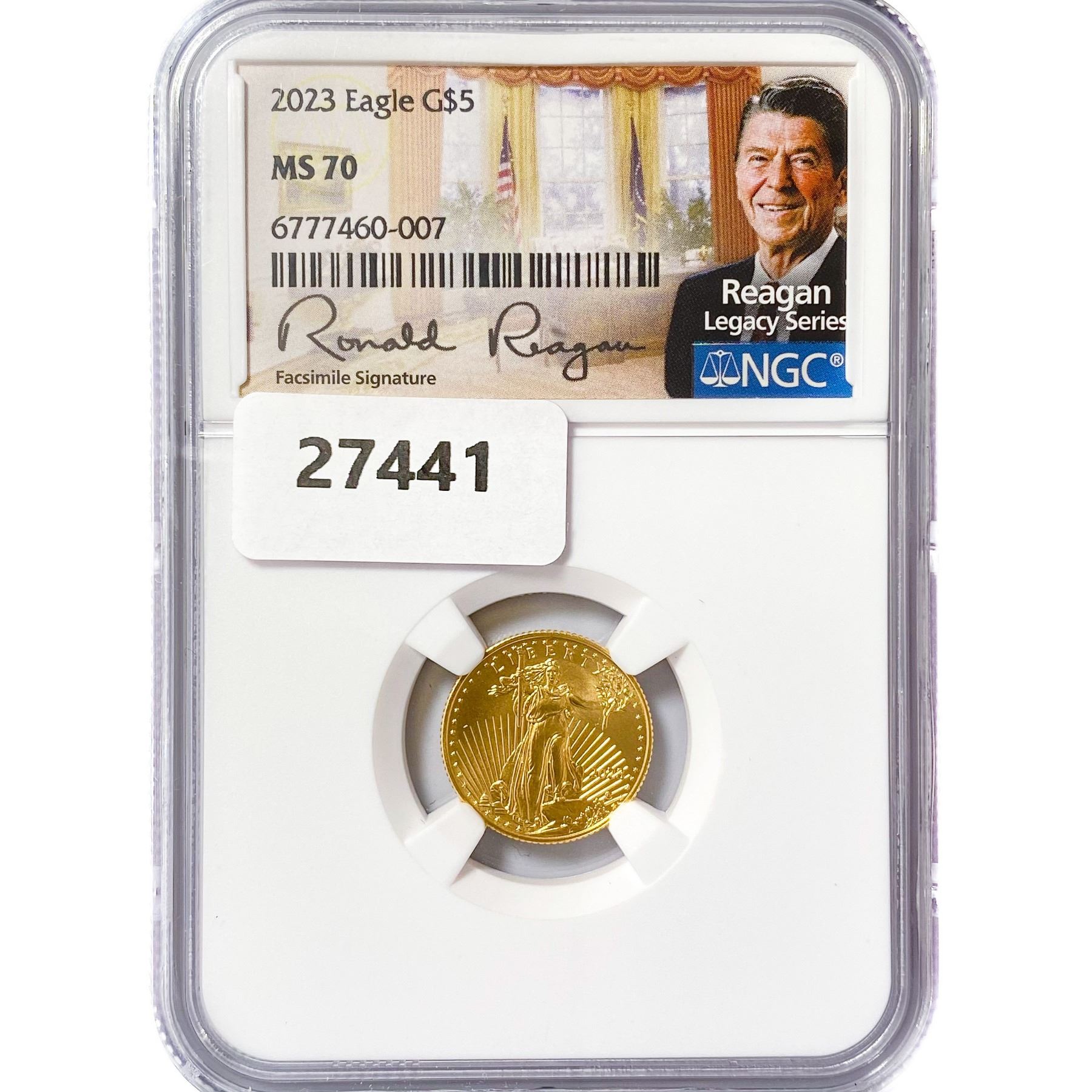 2023 $5 1/10oz Reagan AGE NGC MS70