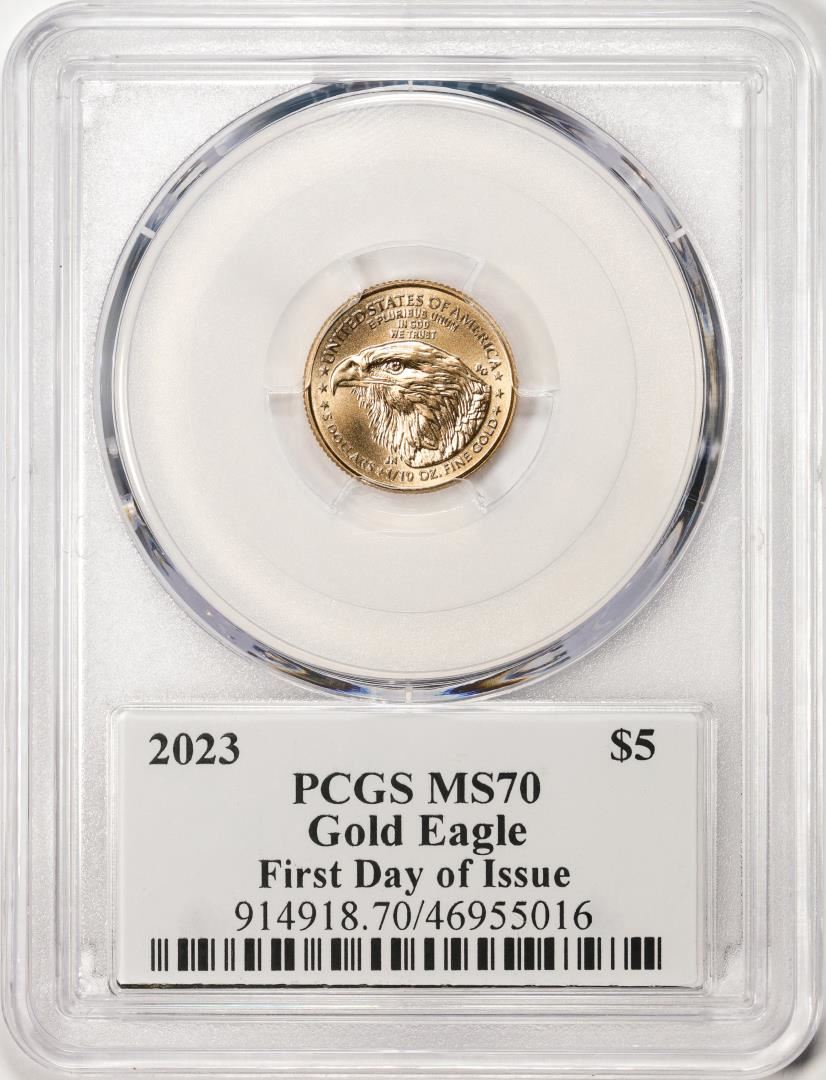 2023 $5 American Gold Eagle Coin PCGS MS70 First Day of Issue