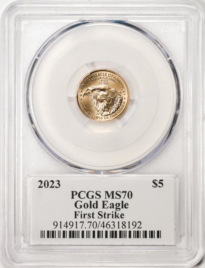 One 2023 $5 American Gold Eagle Coin PCGS MS70 First Strike. PCGS Graded.
