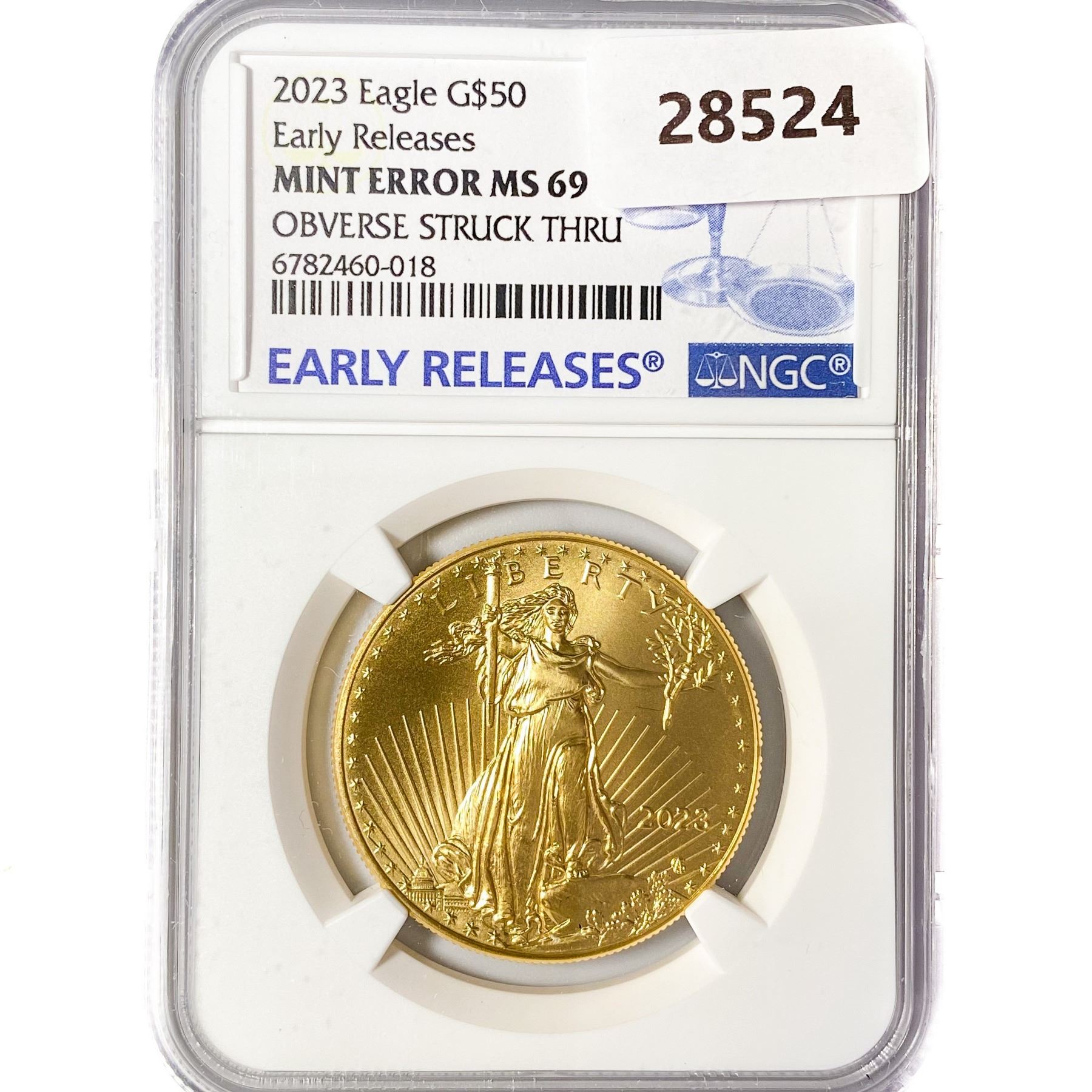 2023 $50 1oz AGE NGC MS69 Obv Struck Thru