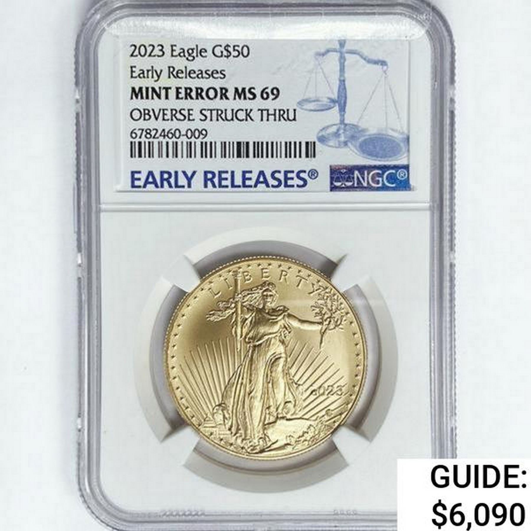 2023 $50 1oz AGE NGC MS69 Obv Struck Thru