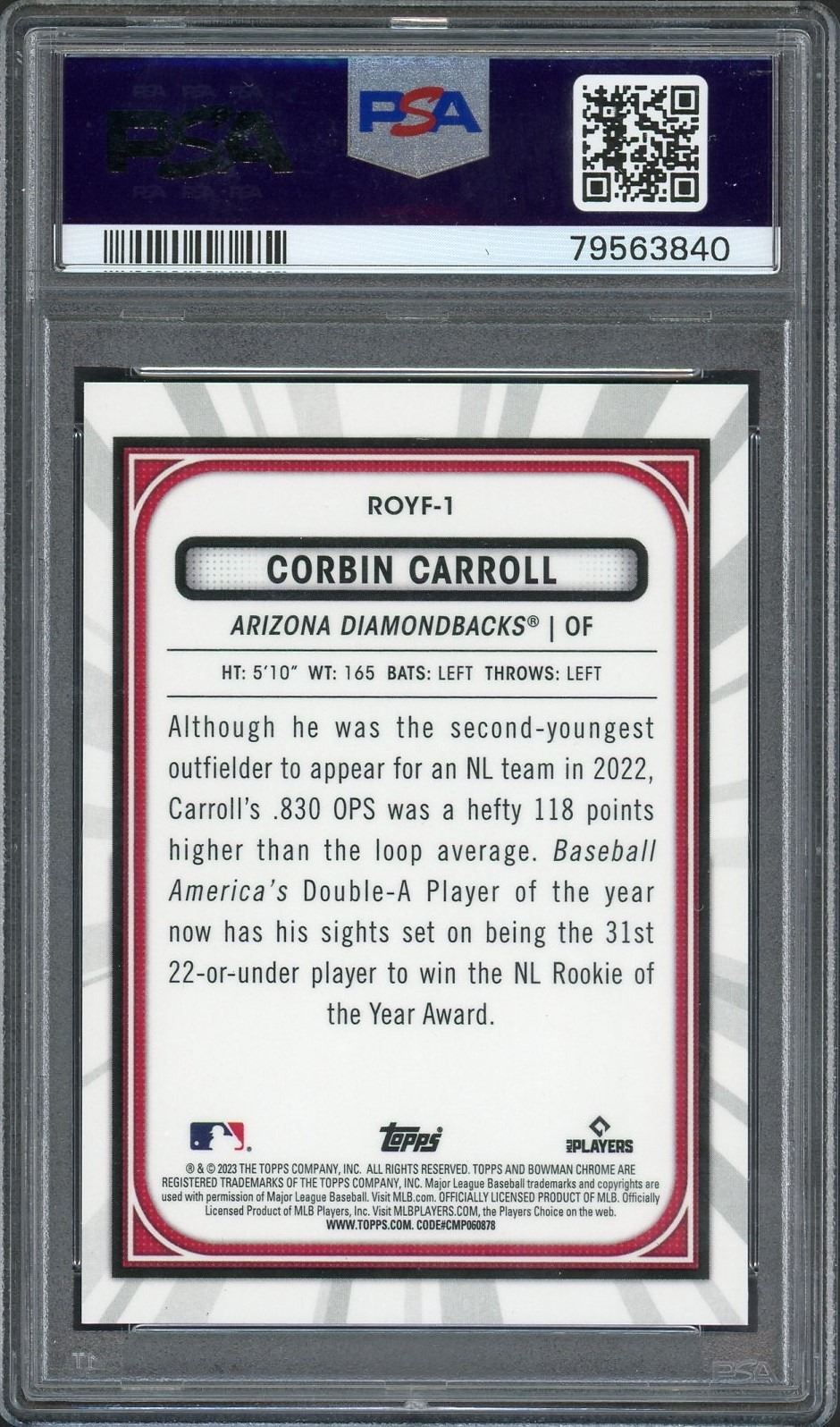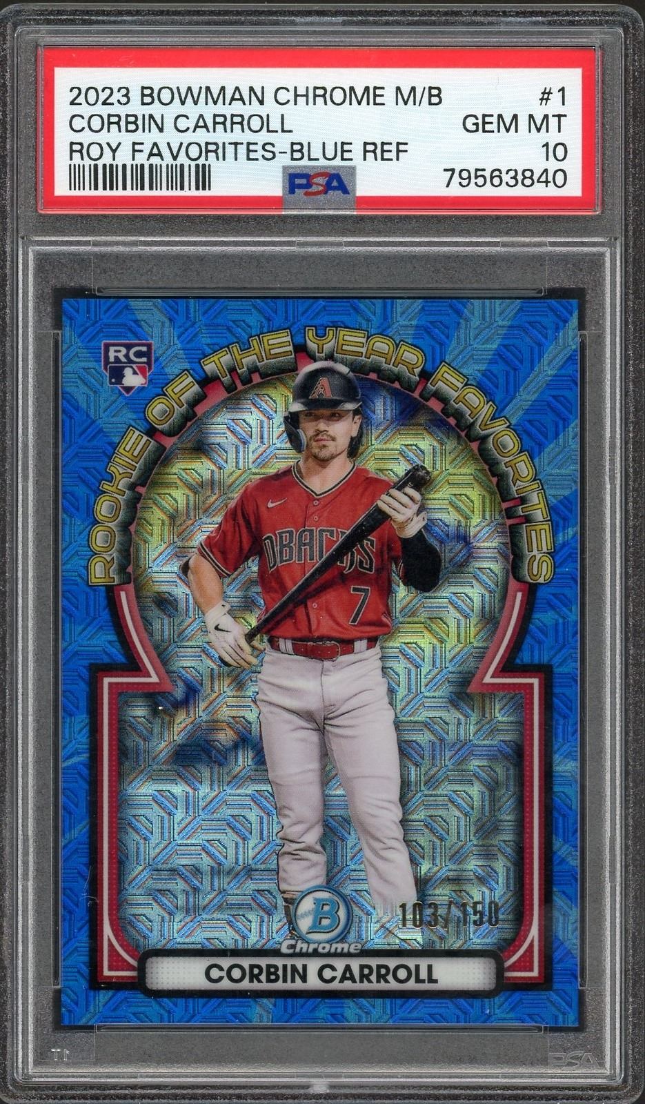 2023-24 Bowman Chrome Mega Box Rookie of the Year Favorites Corbin Carroll Blue Refractor #'d to 150 graded a gem mint 10!