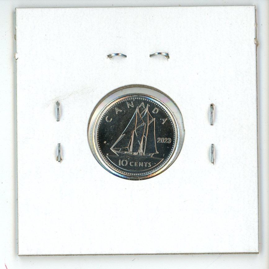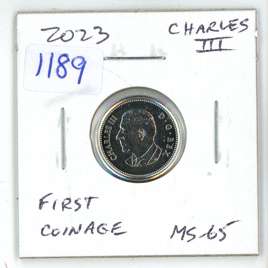 2023 Canadian King Charles III 10 Cents. First coinage of the new king. MS-65 Gem Uncirculated from an original Royal Canadian Mint roll.