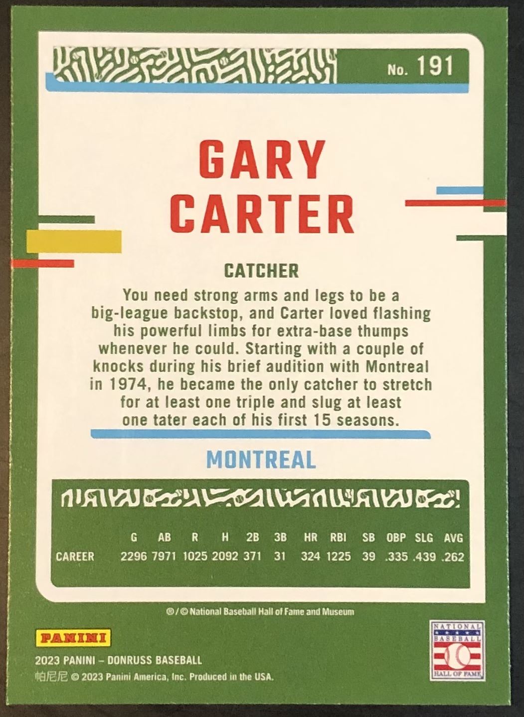 Card #191 MLB, baseball, hall of fame