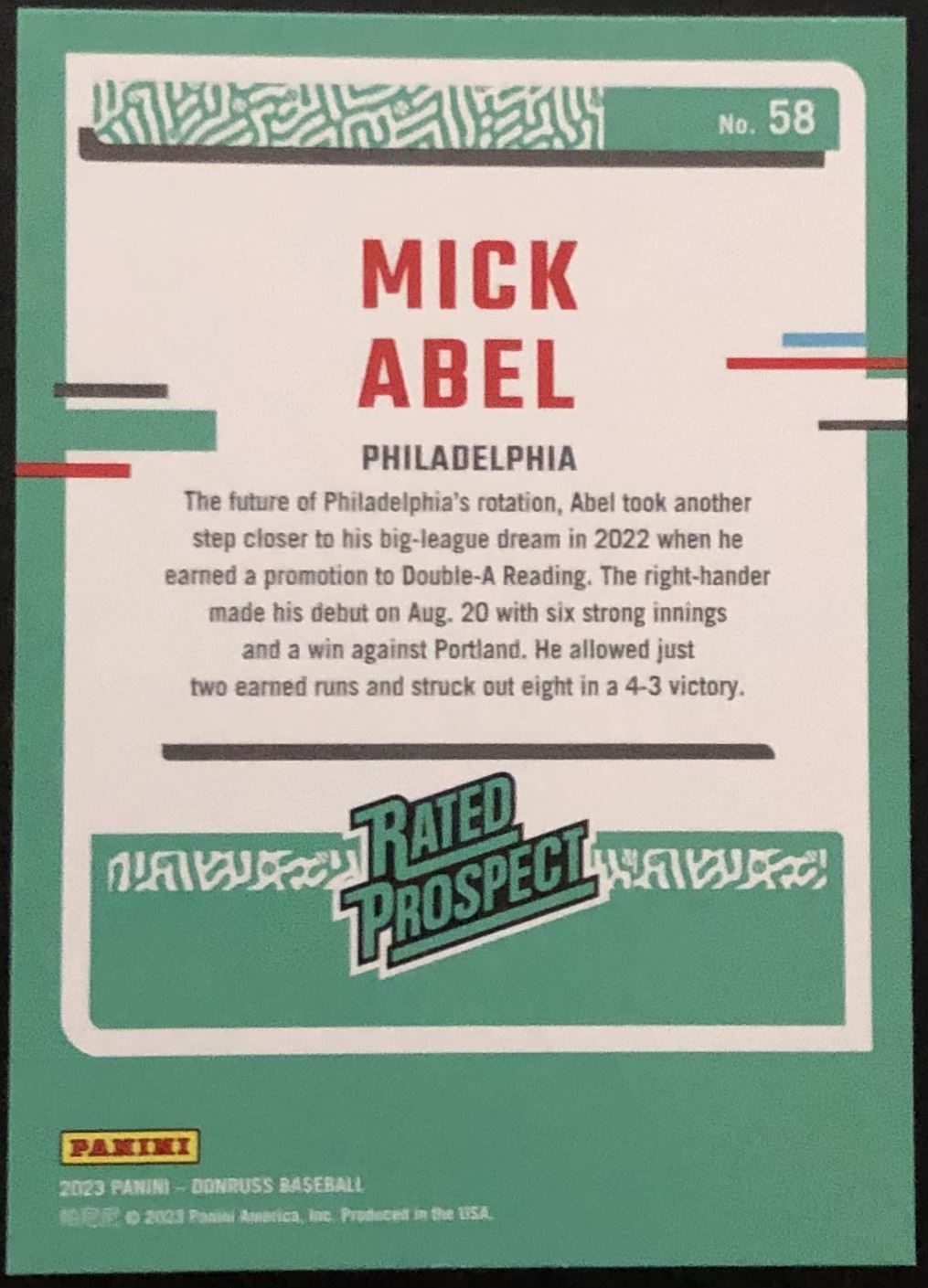 Card #58 MLB, baseball, rookie
