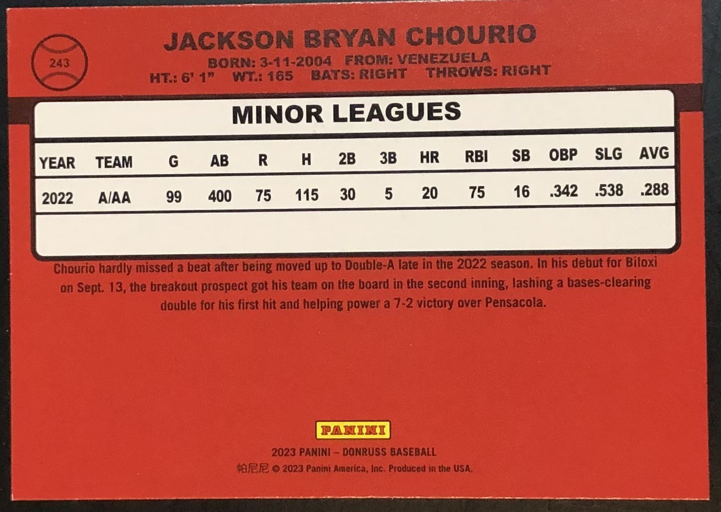 Card #243 MLB, baseball, rookie