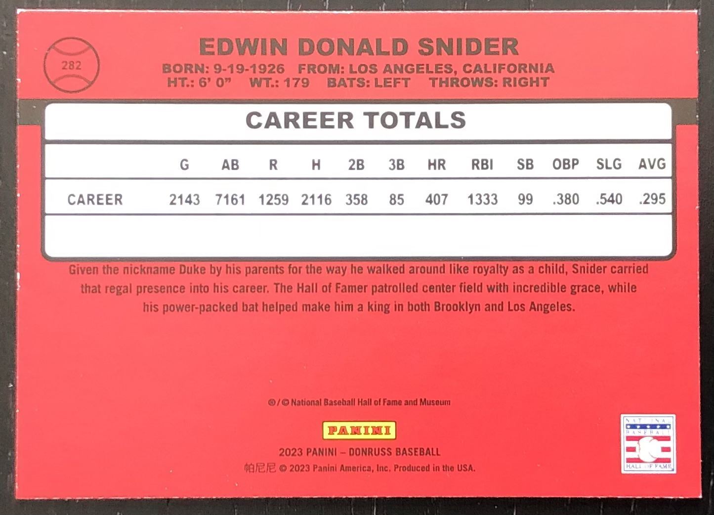 Card #282 baseball, MLB, hall of fame