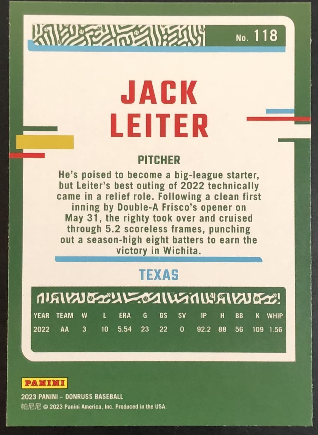 Card #118 MLB, baseball, rookie
