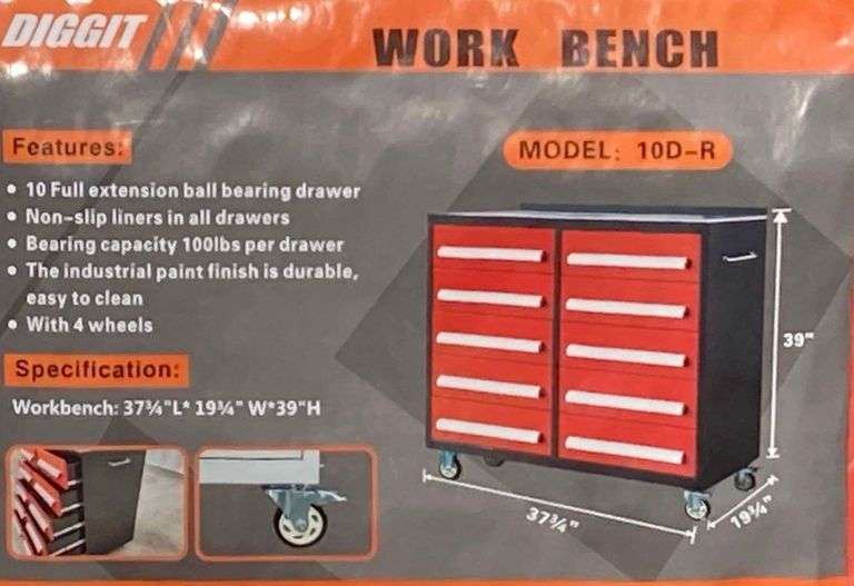 Model 10D-R unused 2023 Diggit 10 drawer tool cabinet, approx. weight 80 kgs.