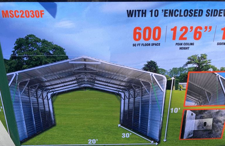 Unused 20'x30' Diggit metal garage carport shed, approx. weight 380kg., model MSC2030F