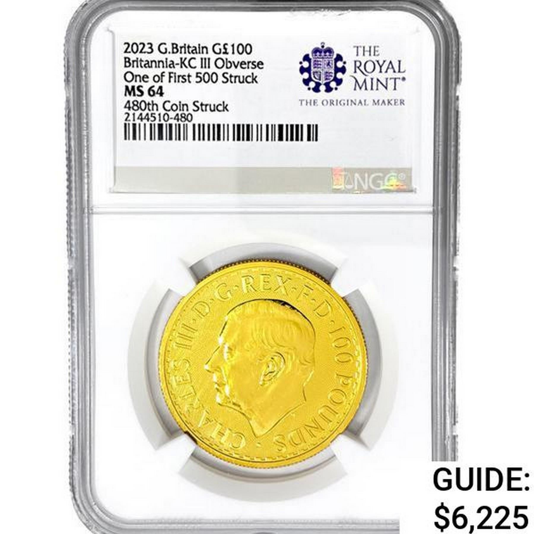 2023 G.B £100 1oz. Gold NGC MS64 KCIII OBV 480th