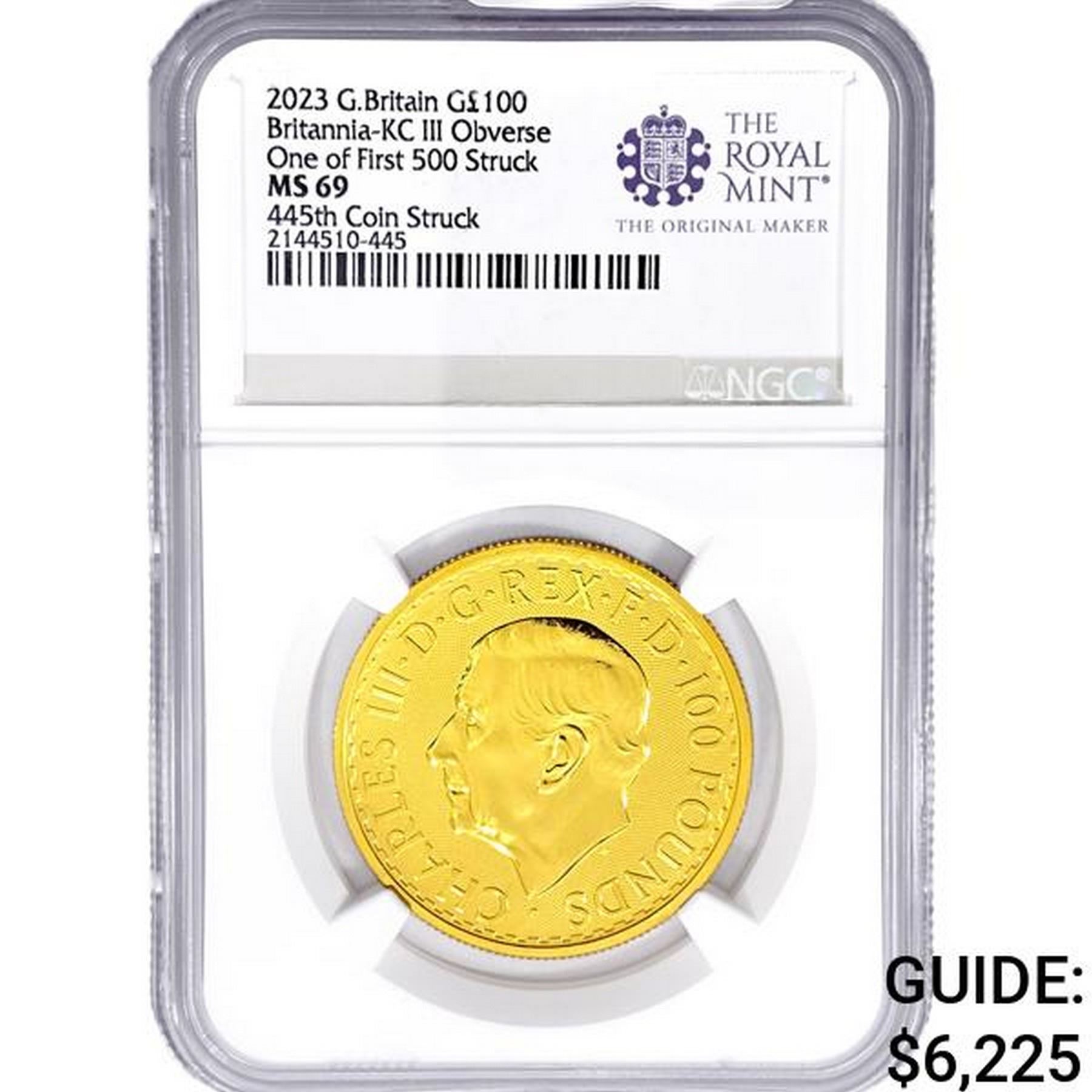 2023 G.B £100 1oz. Gold NGC MS69 KCIII OBV 445th