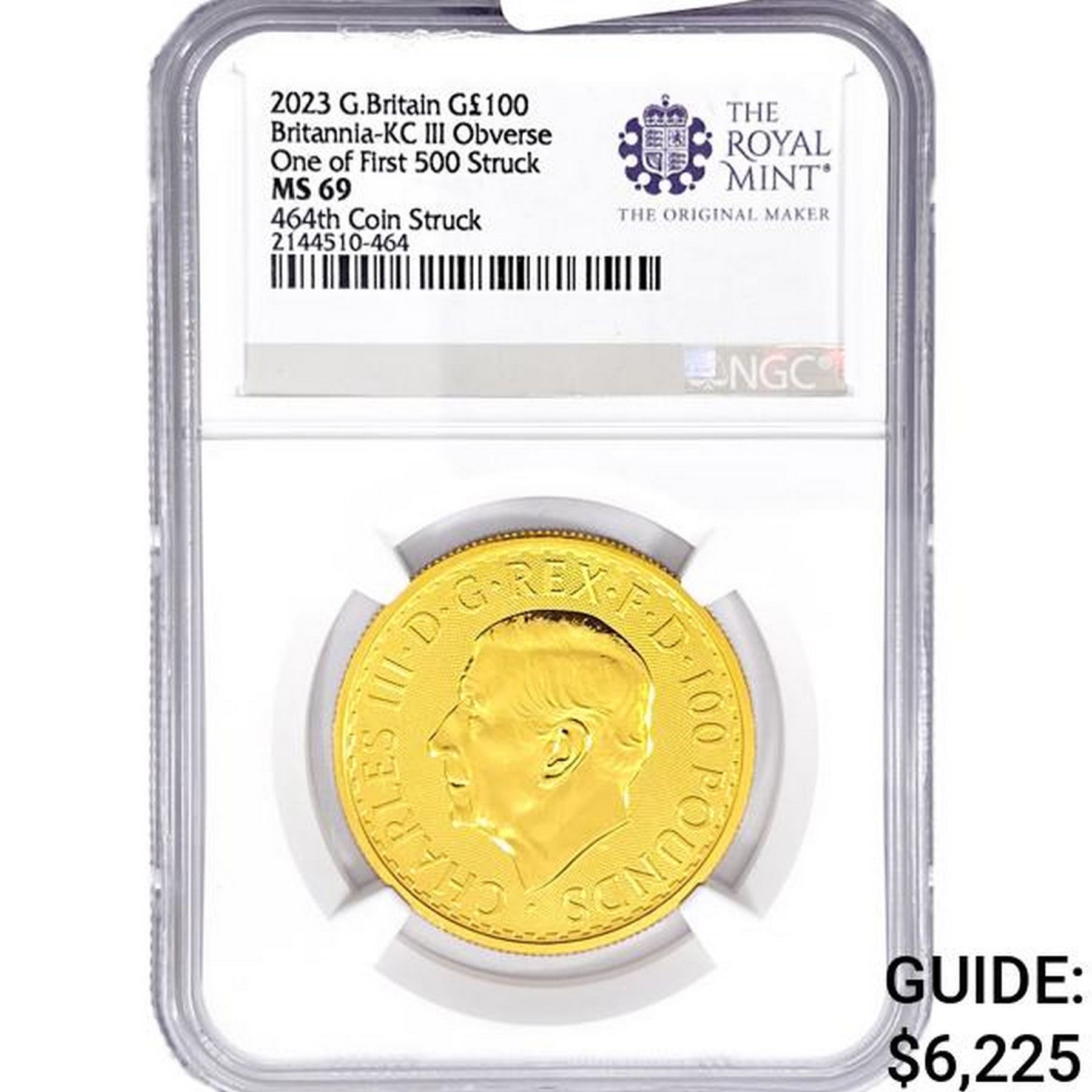 2023 G.B £100 1oz. Gold NGC MS69 KCIII OBV 464th