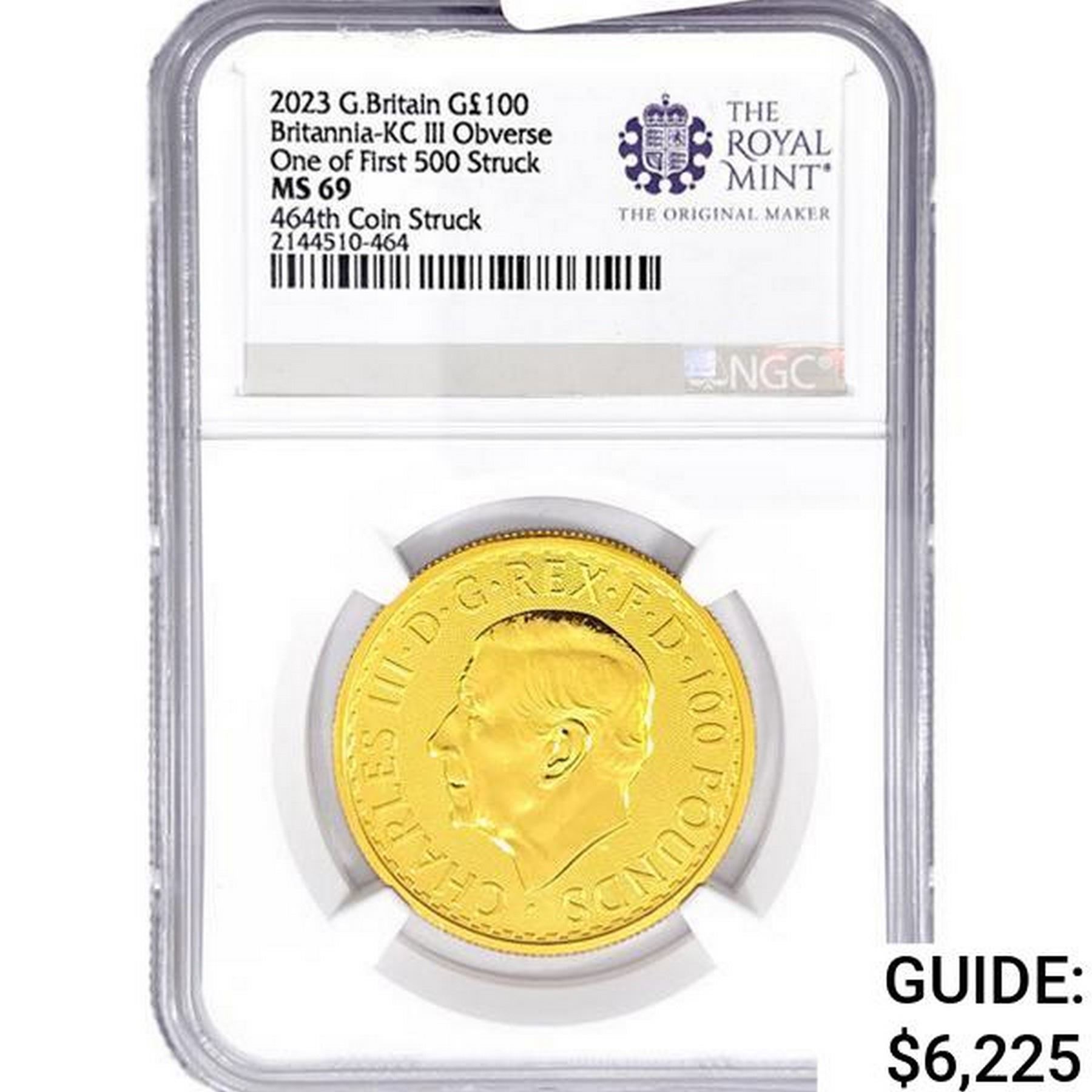 2023 G.B £100 1oz. Gold NGC MS69 KCIII OBV 464th