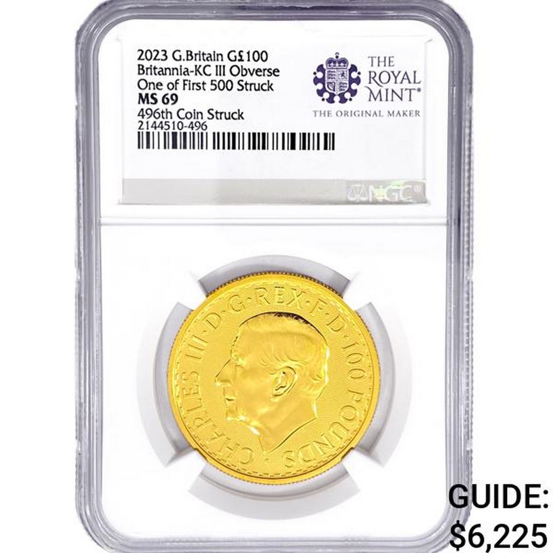 2023 G.B £100 1oz. Gold NGC MS69 KCIII OBV 496th