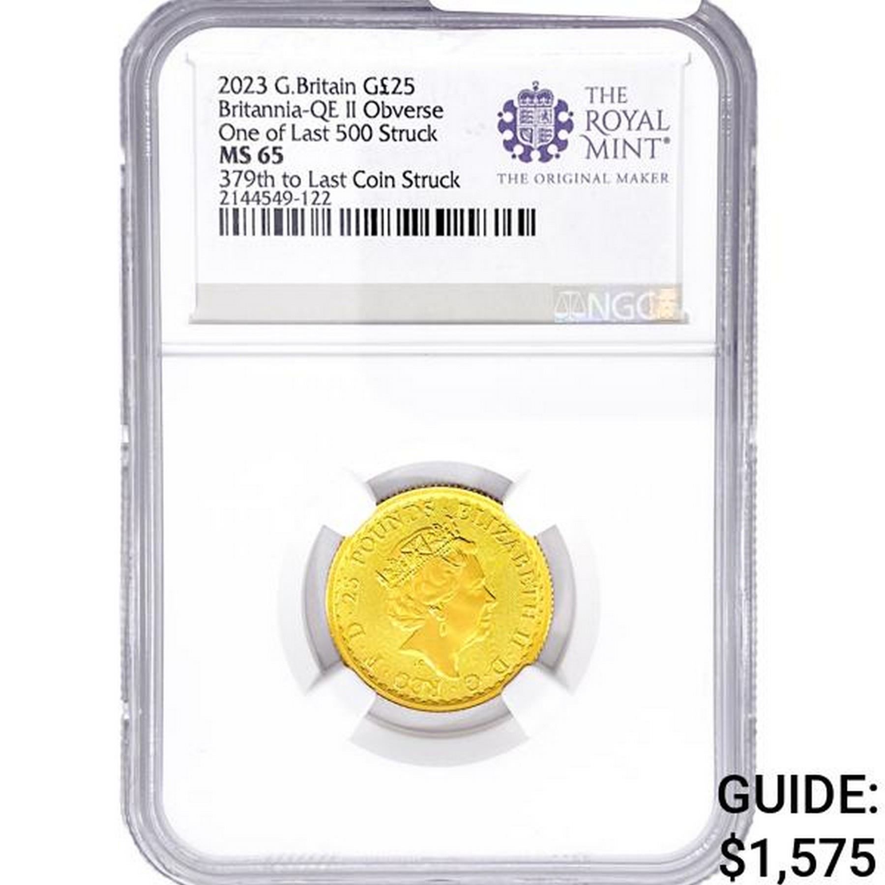 2023 G.B £25 1/4oz. Gold NGC MS65 QEII OBV 379th