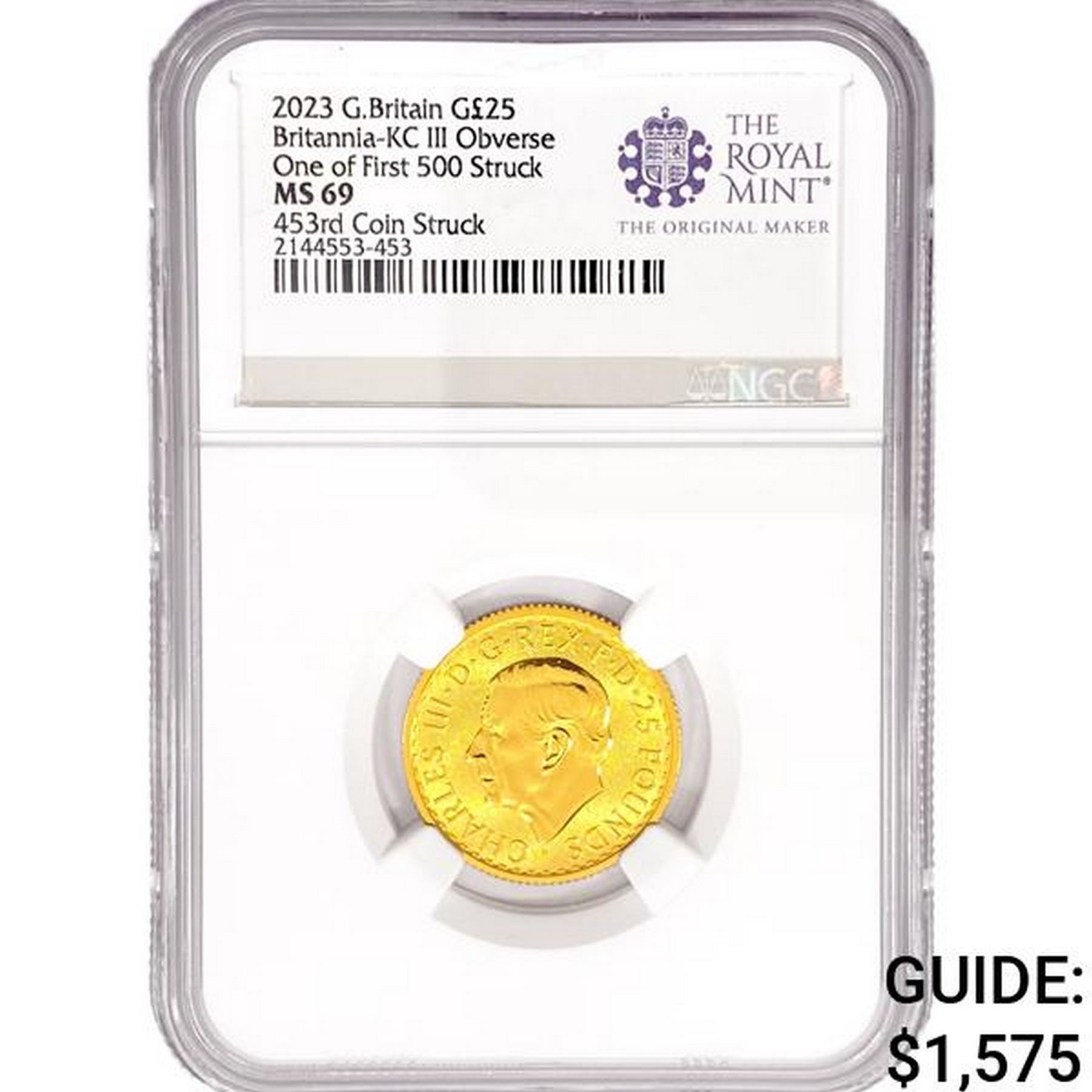 2023 G.B £25 1/4oz. Gold NGC MS69 KCIII OBV 453rd