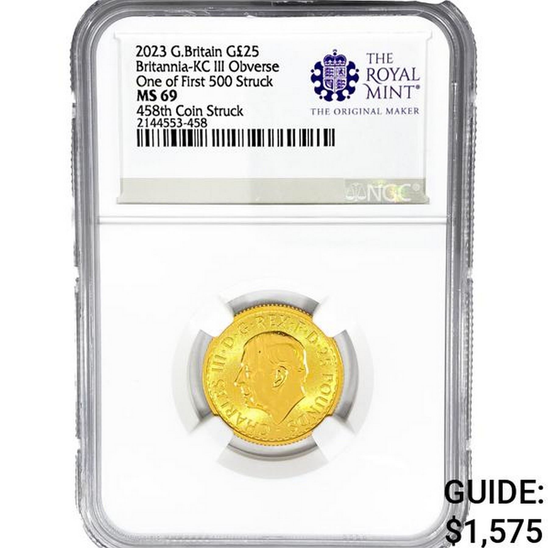 2023 G.B £25 1/4oz. Gold NGC MS69 KCIII OBV 458th
