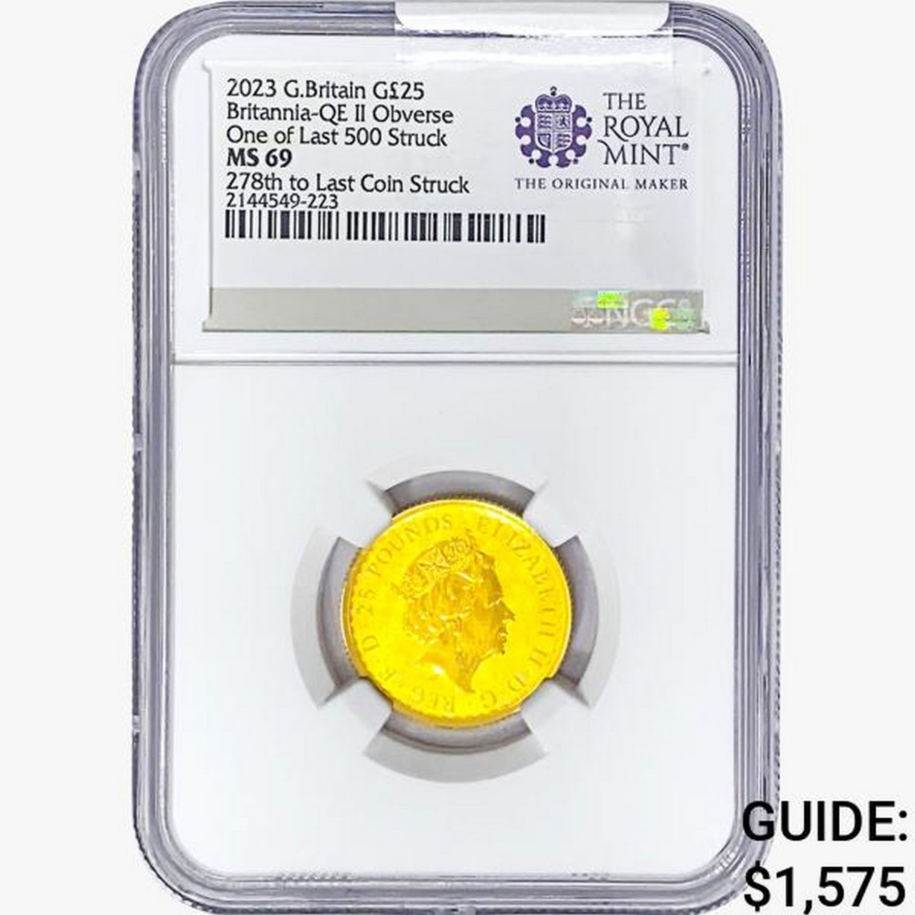 2023 G.Britain £25 1/4oz. Gold 278th NGC MS69 Brit