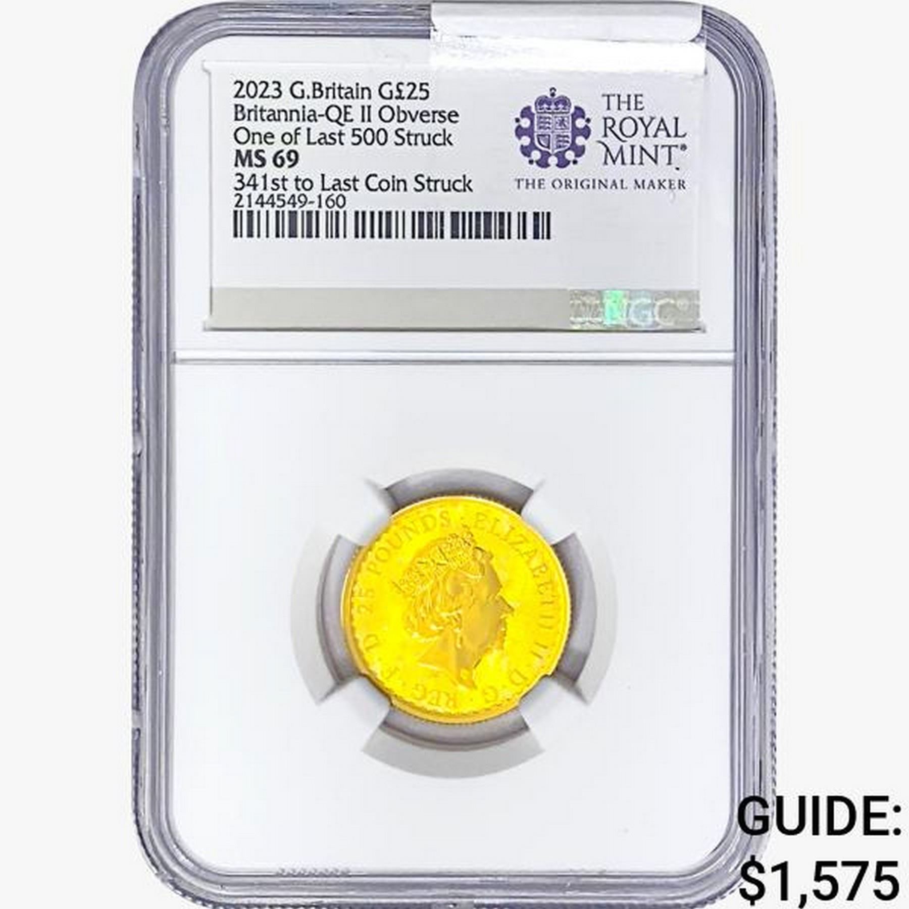 2023 G.Britain £25 1/4oz. Gold 341st NGC MS69 Brit