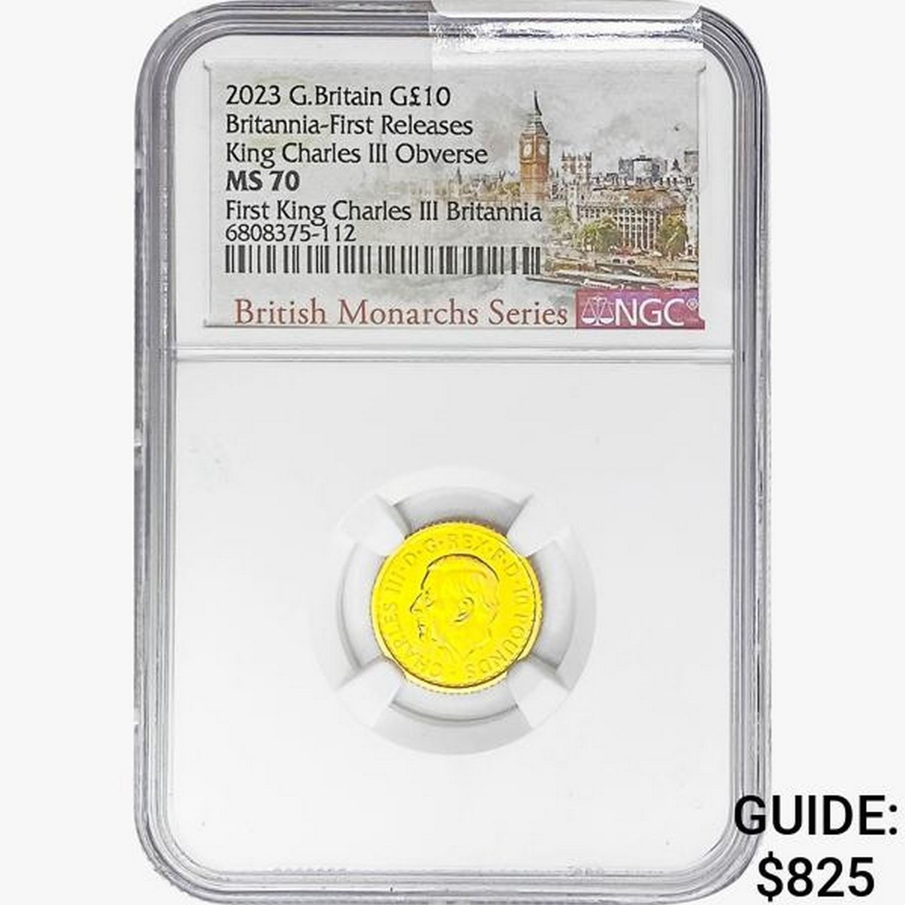2023 G.Britain G£10 1/10oz. Gold NGC MS70 KCIII OBV