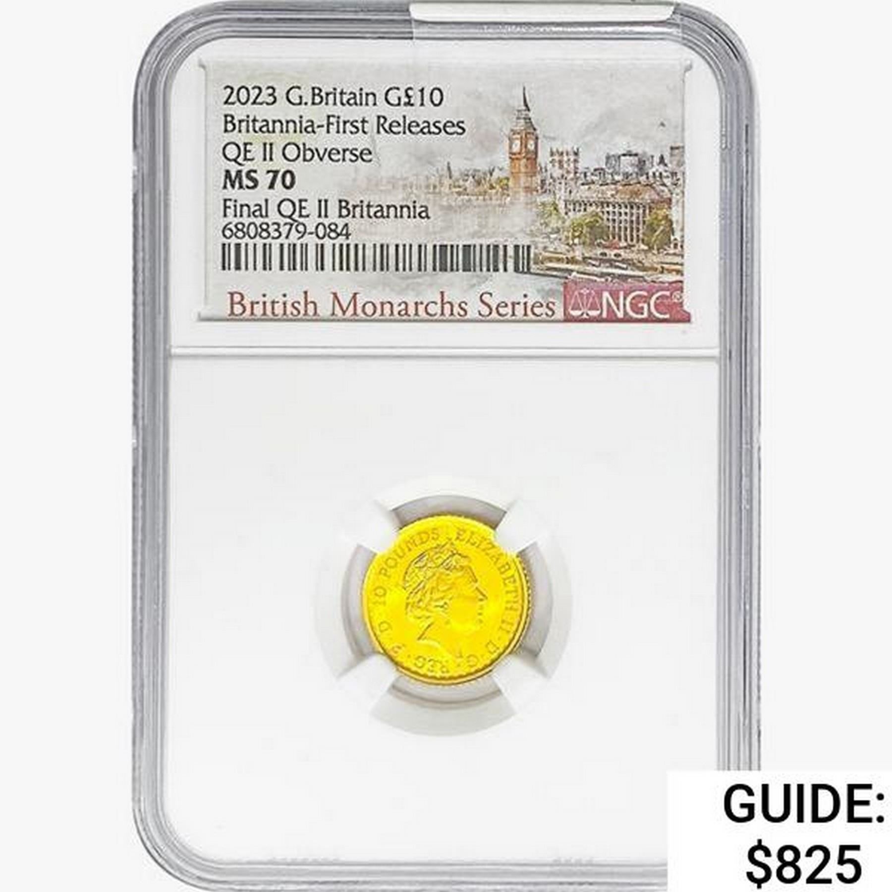 2023 G.Britain G£10 1/10oz. Gold NGC MS70 QEII OBV