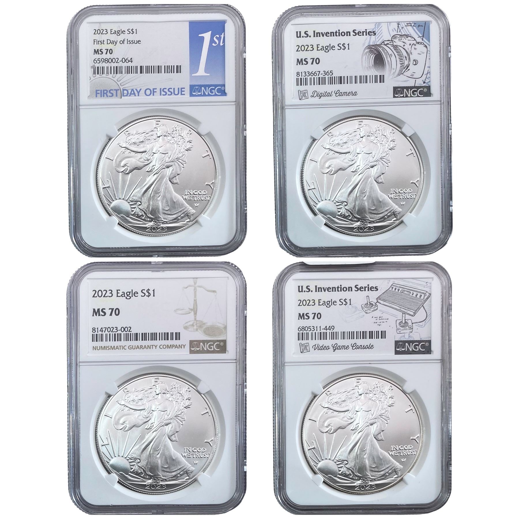 2023 GEM BU Silver Eagle [4 Coins] NGC MS70