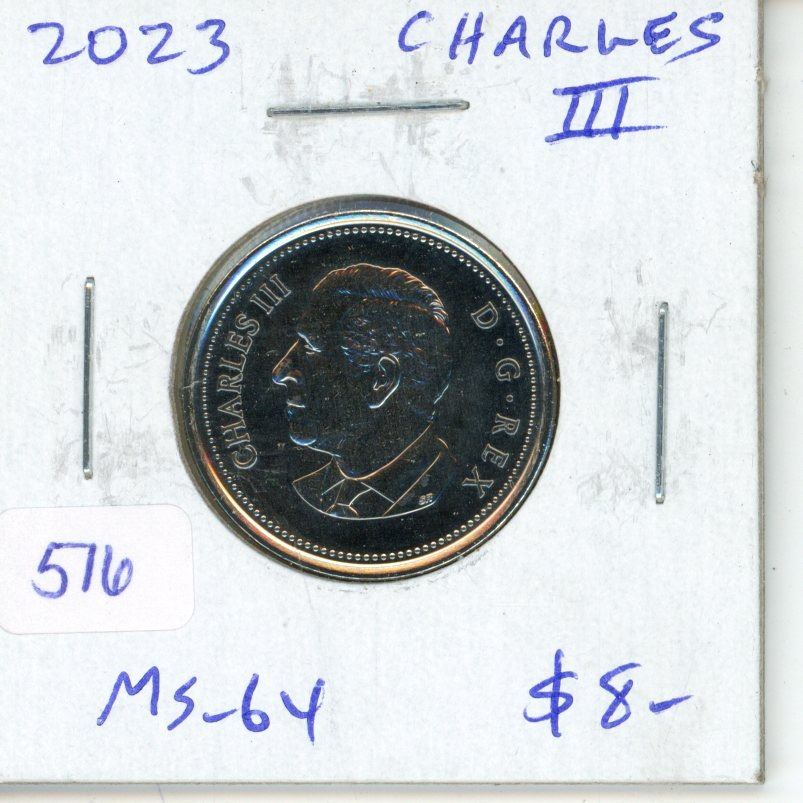 2023 King Charles III 25 Cents. The first issue of the new king. MS-64 from an original roll.